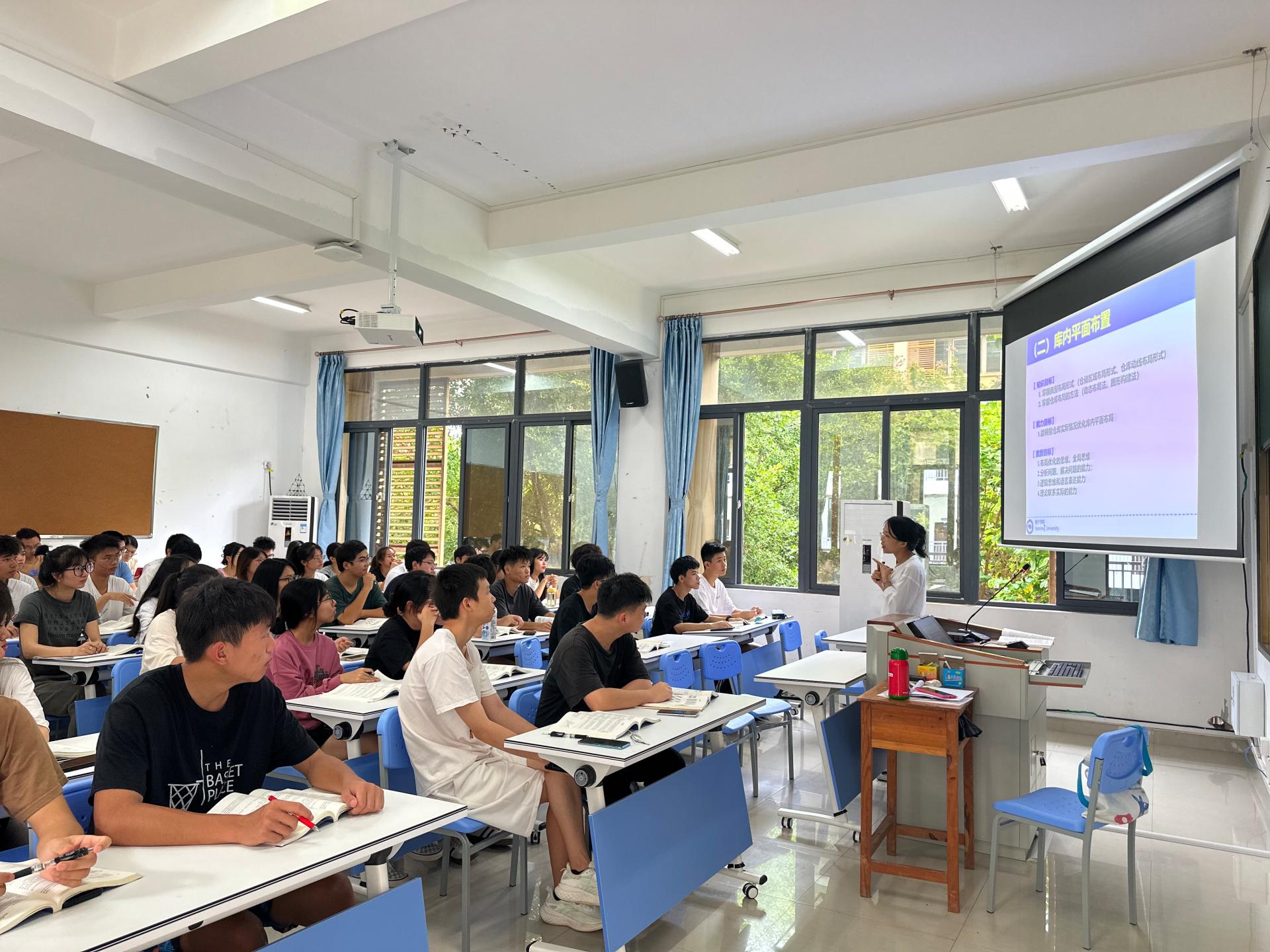在本次示范课中,莫权丽老师以“库内平面布置”为核心内容,结合国家发展需求和行业发展趋势、行业在仓库布局中的痛点堵点形成教学案例,自然融入专业课程教学中,从传统的“以传授学科知识为主”转变为“以发展学生能力为主”。通过典型布局形式、仓库布局的方法等关键知识点,引导学生理解并形成布局优化的思维、全局思维等,同时强调了节约资源、保护环境、服务社会的重要性,实现知识传授与价值引领有机统一。