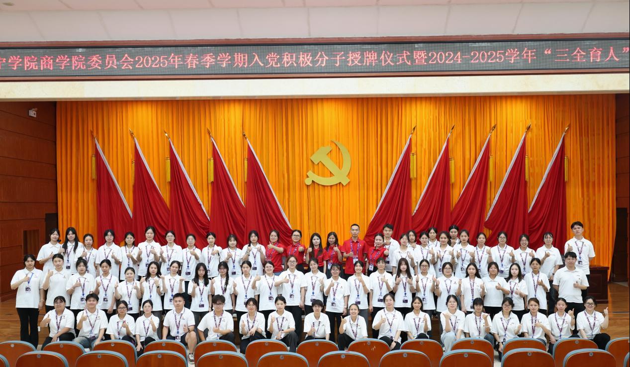 大会在合影留念中圆满结束,此次授牌仪式和成果表彰大会是商学院党委加强党员队伍建设、深化思想政治教育的重要举措。通过庄严的仪式教育和思想动员,进一步增强了积极分子的责任感和使命感。与会师生纷纷表示,将以此为契机,深入学习贯彻习近平新时代中国特色社会主义思想,以更加饱满的热情投身学习和工作中,为学院发展和国家建设贡献青春力量。(商学院学生党支部供稿 文/杨蔓、黄艺萌 图/庞俊杰 一审一校:杨蔓、黄艺萌、陈璐 二审二校:陈可、温丽玲 三审三校:覃雪莲、蒙永亨)