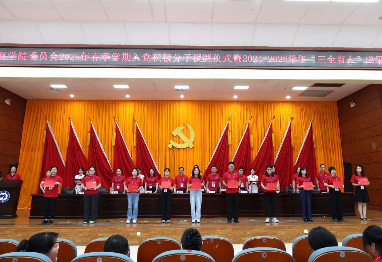 党委书记蒙永亨在总结讲话中向全体受表彰的集体和个人表示热烈的祝贺,肯定了入党积极分子的政治追求和师生在“三全育人”工作中的突出贡献。他寄语入党积极分子要坚定理想信念,加强理论学习,以实际行动践行初心使命;号召全体师生以先进典型为榜样,全院上下凝心聚力、砥砺奋进,共同开创商院事业发展新局面。