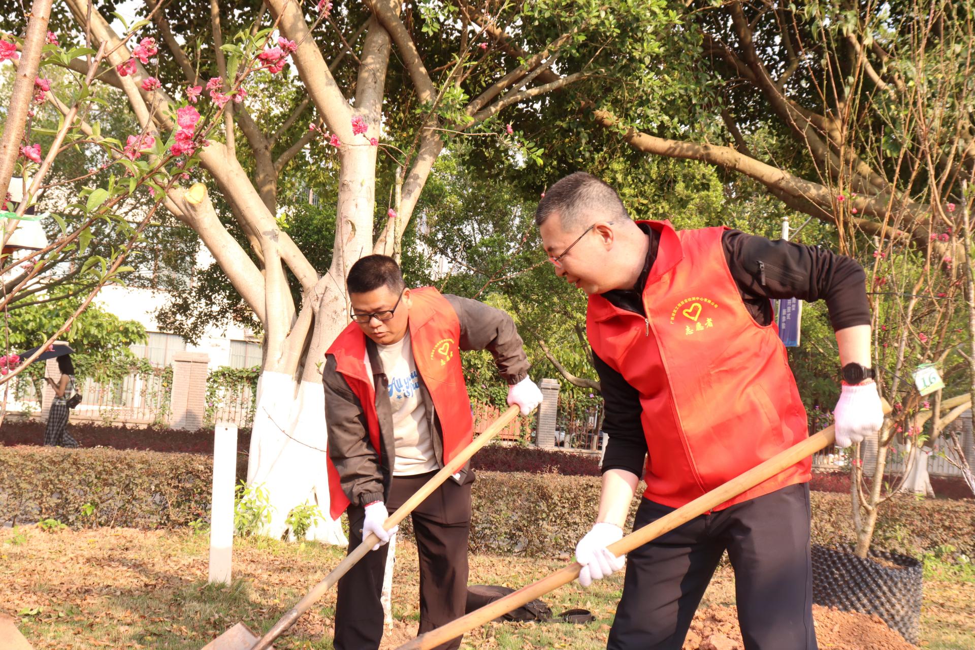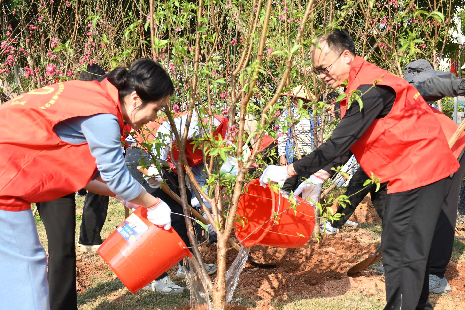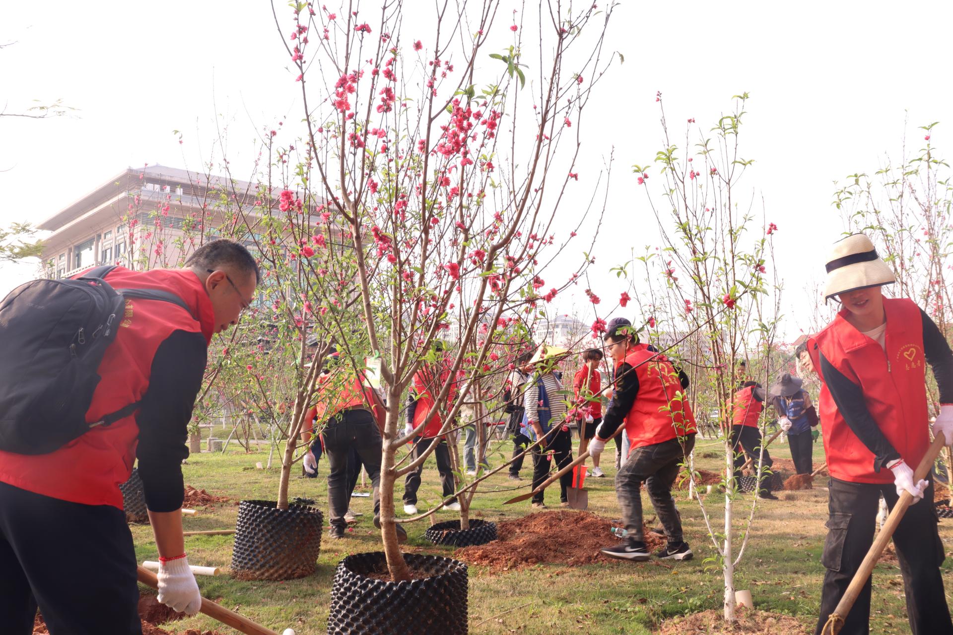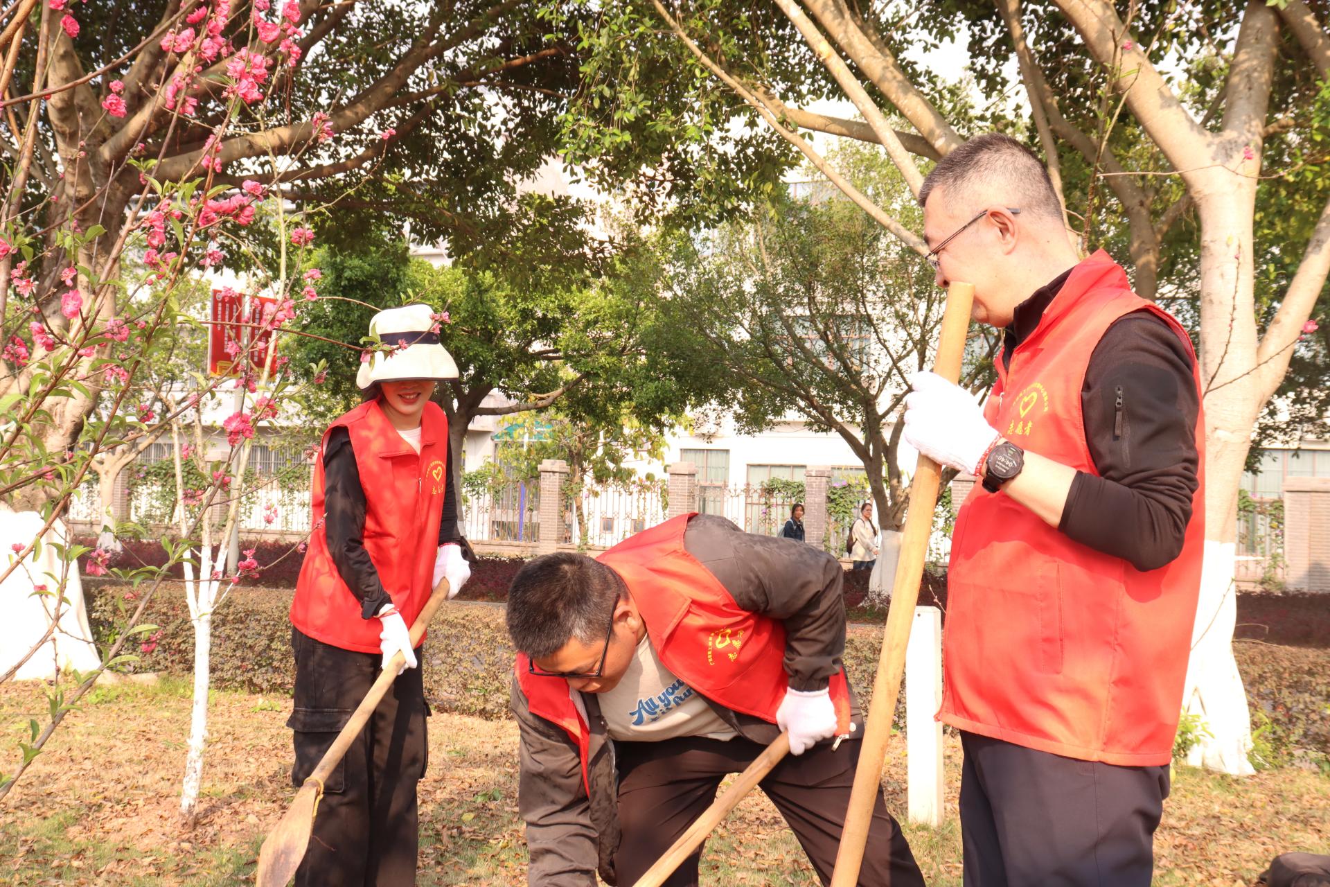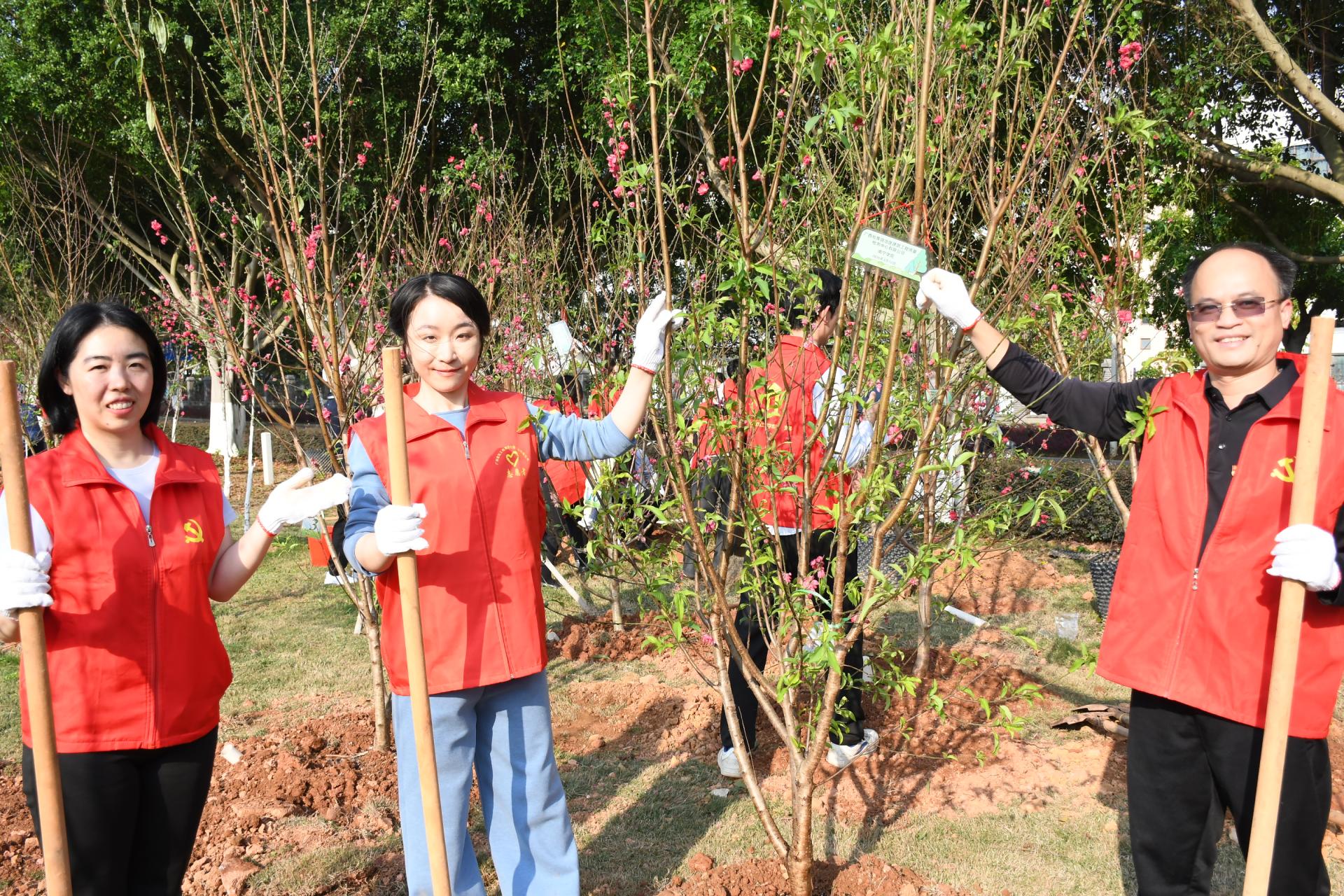 参加活动的同志们以实干践行雷锋精神,将志愿服务、以劳育人理念融入实践行动,既用双手为校园增添一抹抹红艳,也为校企合作种下友谊与希望的种子。植树结束后,全体人员集体合影留念。