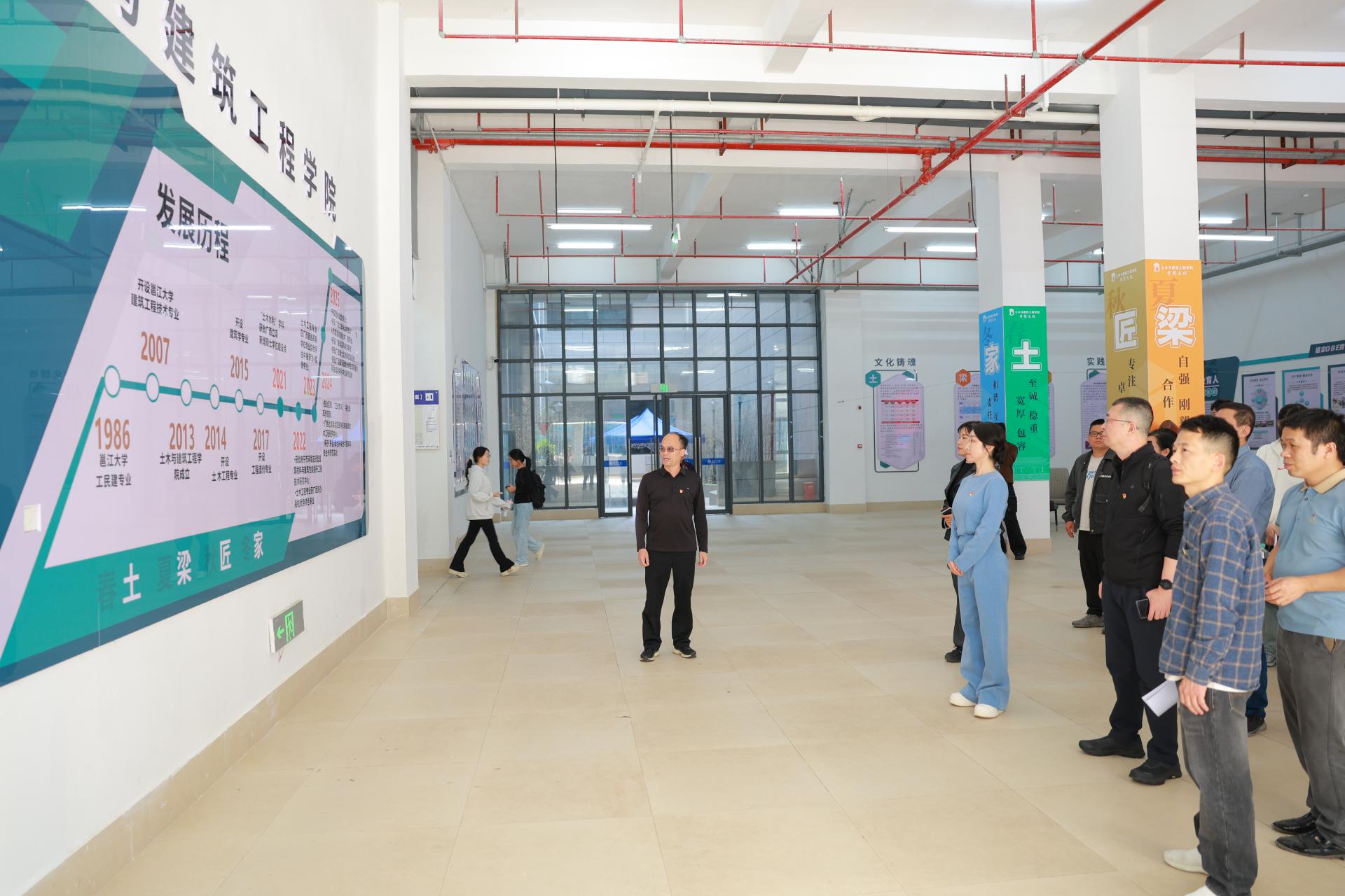 活动伊始,广西建筑工程质量检测中心一行参观了南宁学院工程结构综合实验平台,了解学院近年发展概况。学院详细介绍了在实验室建设、人才培养及科研成果转化等方面成效。校企双方还就无人机智能检测技术应用、校企协同育人等领域展开探讨交流,为后续对接合作奠定坚实基础。参观结束,双方前往植树活动地点。