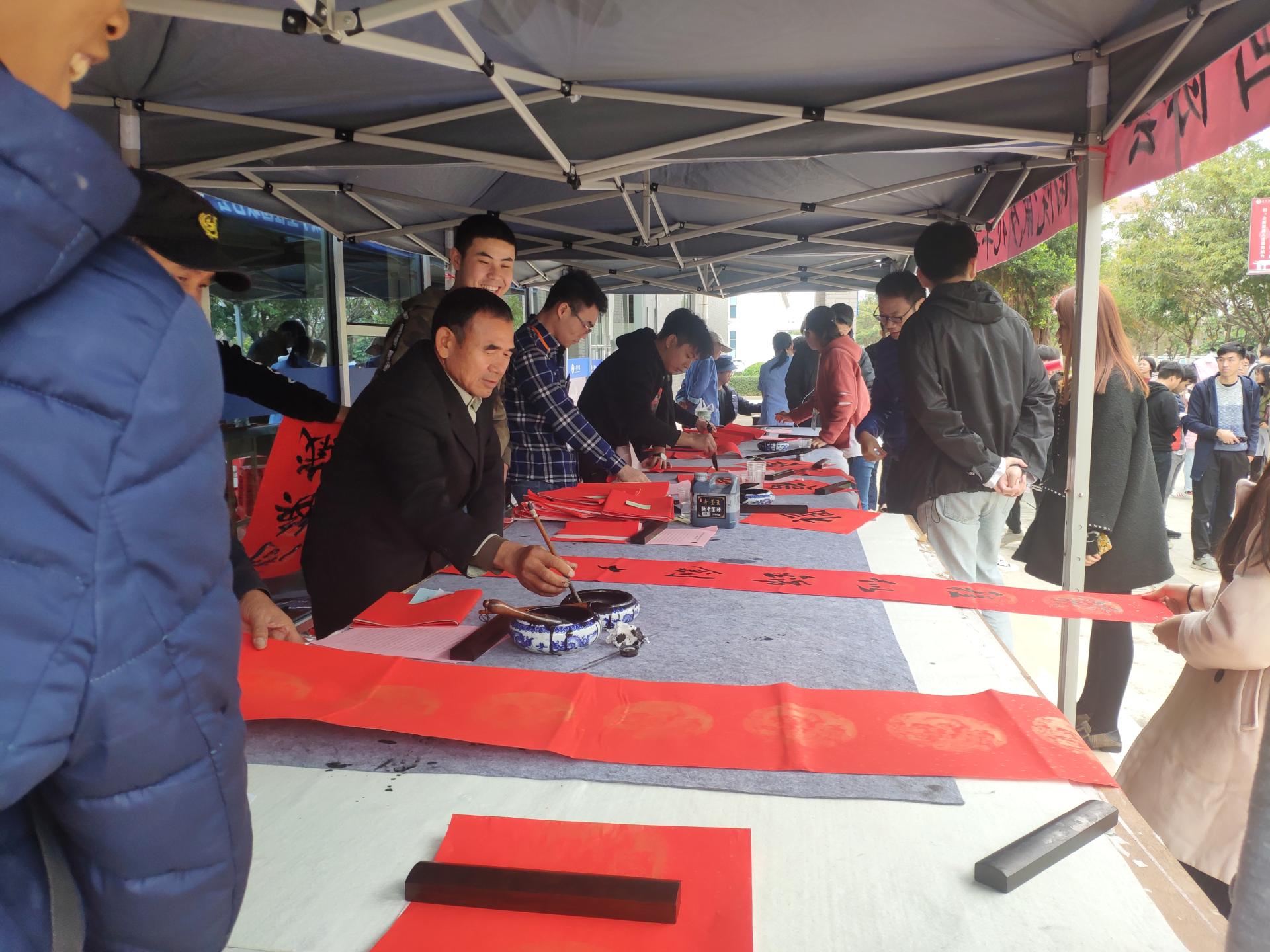 为使广大学子进一步了解我国传统楹联文化,在校园内感受新春佳节喜庆的节日气氛,2019年12月19号南宁学院书画协会在大学生活动中心一楼大厅成功举办“书香南院,鼠岁兆丰年”送春联活动。