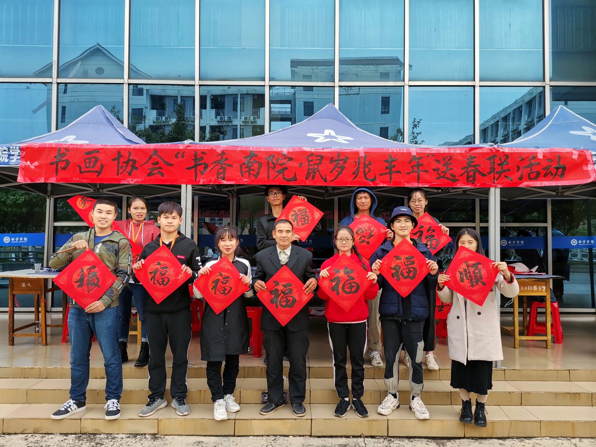 每年的年底送春联活动是南宁学院的特色校园文化之一,校书画协会举办本次“书香南院,鼠岁兆丰年”活动,一方面展示了校对学生社团文化建设的重视,另一方面也为南院学子送去温暖与关爱,增加了浓浓的年味,丰富了我校的校园文化生活。书画协会供稿  图文/卢其芳