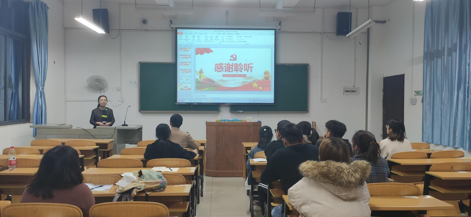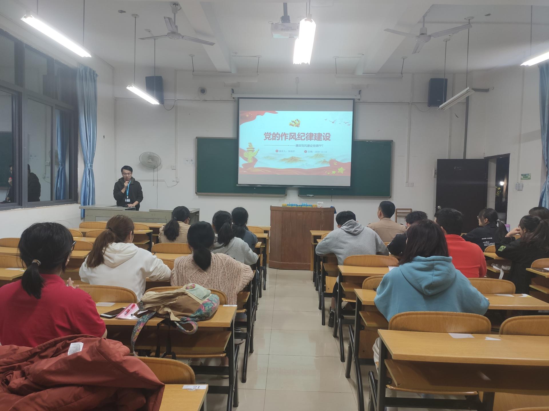 习近平总书记曾说:“不论是高级干部还是普通党员,要做合格党员,学习贯彻党章都是第一位要求”,陈园园老师以“学习新党章,做合格党员”为题,为预备党员详细解读党章。甘巧丹老师“以党员的条件、义务和权利”为题,从明确党员八大权利和义务、履行党员义务的途径、正确行使党员权利等方面进行阐述,并结合身边实际,授课内容丰富易懂,让预备党员们明确了党员权利与义务的关系。徐鸿宇老师结合在校、带学生等的工作经历给预备党员上了一节“党的作风纪律建设”为主题的课程,徐老师严肃又不失诙谐,讲解“右倾机会主义”“左倾冒险主义”“延安整风”等事件的不正确的思想作风所带来的危害,了解正确作风纪律的重要性,守住纪律的底线。
