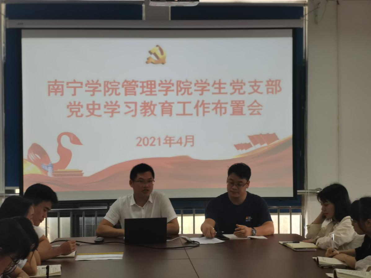 421日,管理学院学生党支部在行政楼425会议室召开党史学习教育工作布置会”,会议由管理学院学生党支部书记韦瑞凯老师主持,黄昌源老师以及学院全体在校学生党员参加布置会