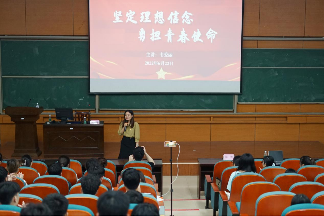 开班仪式结束后,客座教师耿悦老师和韦爱丽老师分别作专题授课。耿悦老师授课专题围绕实现中华民族伟大复兴的主题展开,从实现中华民族伟大复兴的价值逻辑、理论逻辑、文化逻辑、道路逻辑做出一一阐述,加强培训班学员对实现中华民族伟大复兴使命的理想信念。韦爱丽老师授课专题为“坚定理想信念,承担青春使命”。韦爱丽老师对什么是青春、如何担当青春使命做出提问和解释,引发培训班学员的深刻思考,重新定义青春,正确理解青春。
