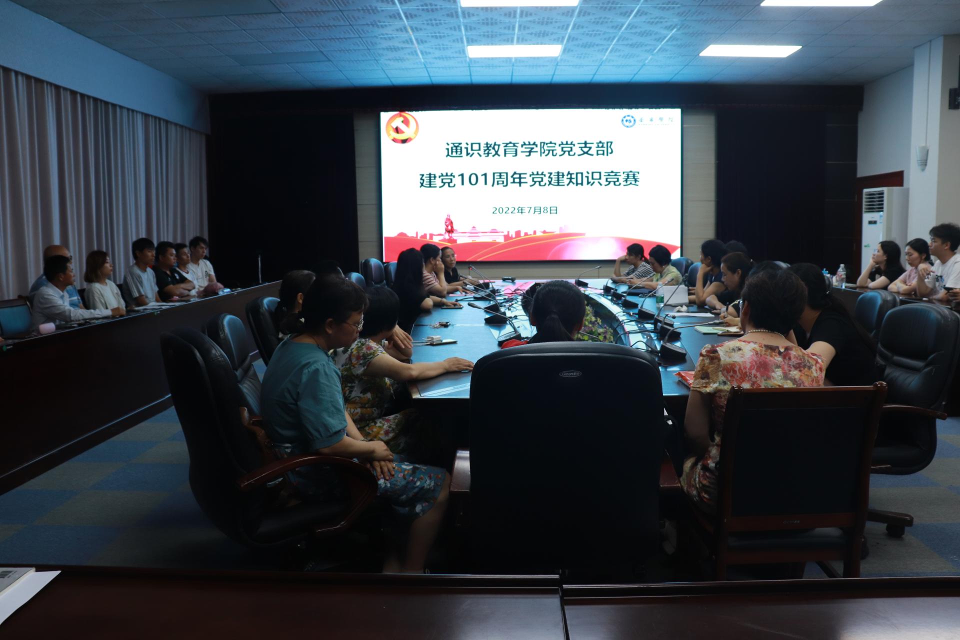 为庆祝中国共产党成立101周年,重温党的光辉历程,2022年7月8日下午,通识教育学院党支部在大学生活动中心302会议室举办建党101周年党建知识竞赛暨党支部主题党日活动,活动由党支部书记黄瓅教授主持,学院全体教师参加了竞赛。