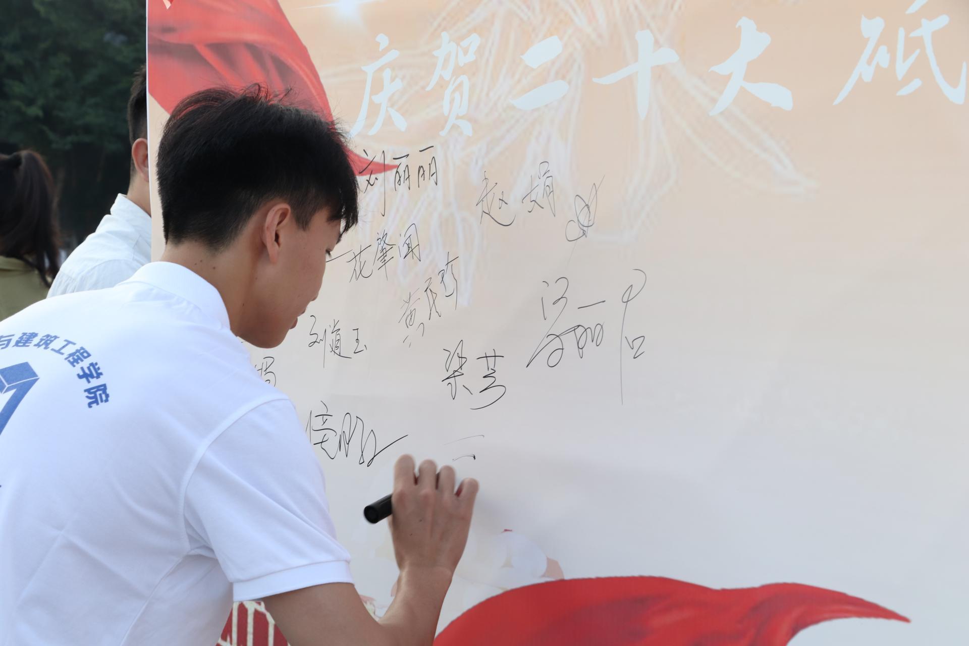 紧接着赵娟副书记发表讲话,她向同学们提出几点建议和要求:认真学习党的二十大精神,了解国家发展规划和进程;努力学习专业知识,继承和发扬学院土梁匠家文化;珍惜美好时光,努力学习不负韶华,为实现伟大中国梦付出自己的实际行动。随后,2020级蔡昌吉同学带领全体同学齐声高喊宣誓词,展示出土建学子的青春誓言和强国信心。最后,学院党委副书记赵娟以及在场的老师和班级学生代表进行签字活动,至此主题团日活动和升旗仪式圆满结束。