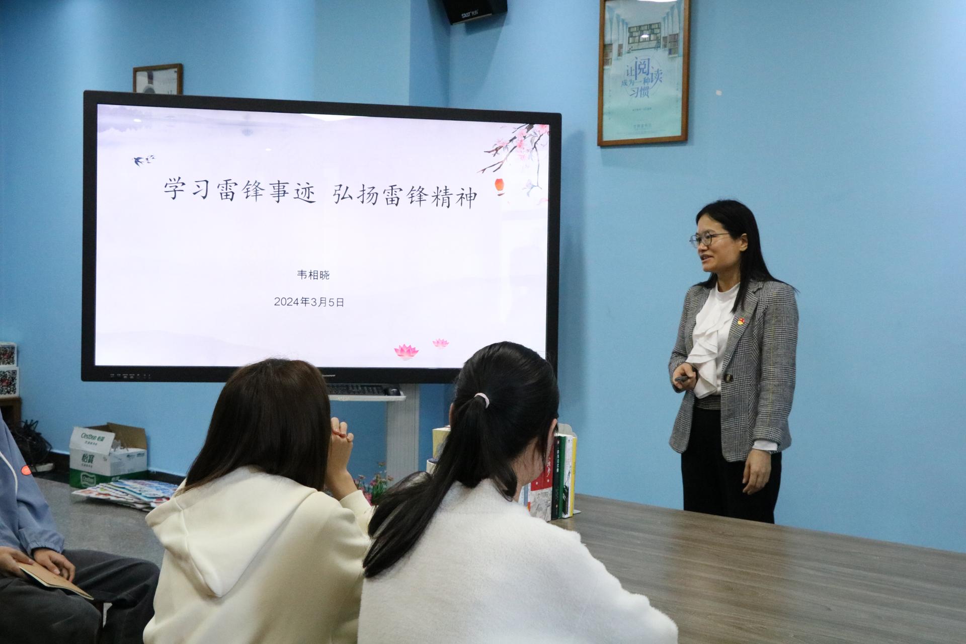图书馆党支部书记韦相晓带领同学们学习雷锋精神