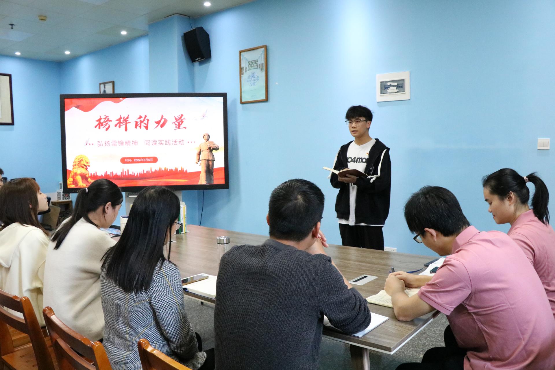 活动于3月5日在图书馆二楼阅读分享空间开展。活动伊始,主持人先用一段介绍雷锋同志生平事迹的视频引出主题。接着,图书馆党支部书记韦相晓带领大家深入学习雷锋精神,通过对雷锋简介、雷锋精神、如何践行雷锋精神三个方面的详细讲解,带领大家了解雷锋同志的感人事迹,领悟雷锋精神的主要内涵,思考新时代青年、共产党员如何践行雷锋精神。韦书记强调,新时代青年尤其是共产党员要深刻把握雷锋精神的时代内涵,要学习雷锋同志忠于党和人民、舍己为公、大公无私的奉献精神,立足本职、在平凡的工作中创造出不平凡业绩的“螺丝钉精神”;苦干实干、不计报酬、争做贡献的艰苦奋斗精神。在日常生活中弘扬雷锋精神,践行互助、互爱、友善的优良作风,让雷锋精神在新时代绽放更加璀璨的光芒。
