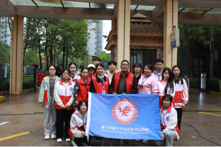 南宁学院信息工程学院“天下无诈”宣传实践团与社区工作人员合影