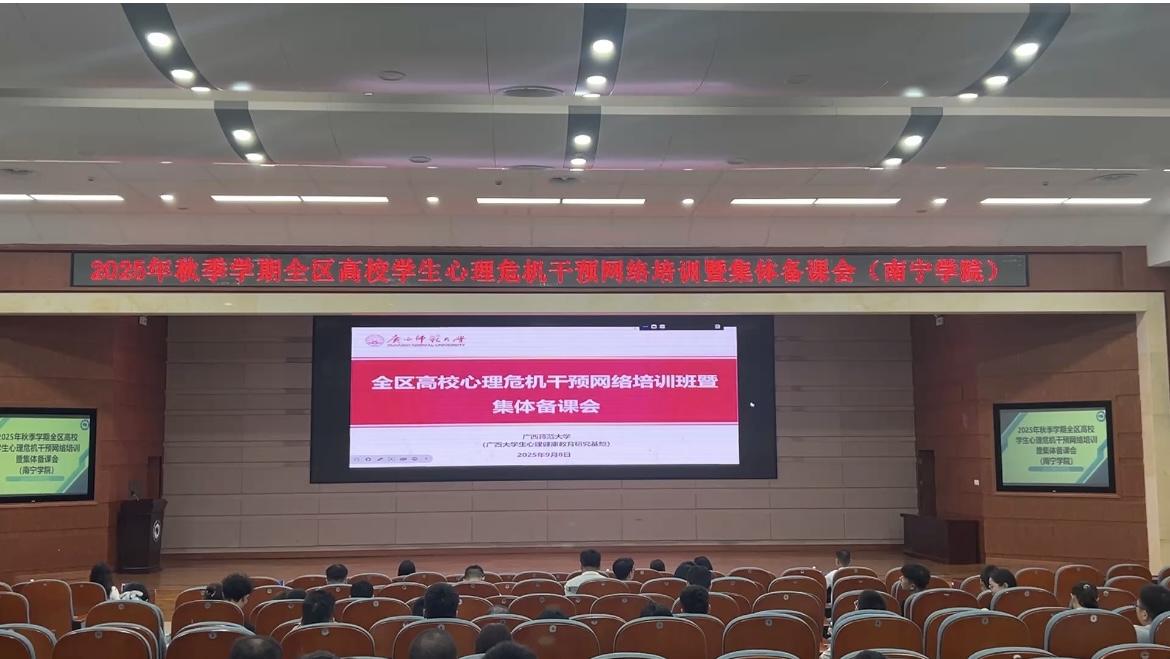 9月8日,由自治区教育厅主办、广西大学生心理健康教育研究基地(广西师范大学)承办的全区高校学生心理危机干预网络培训暨集体备课会如期开展。