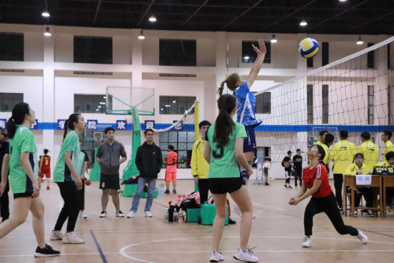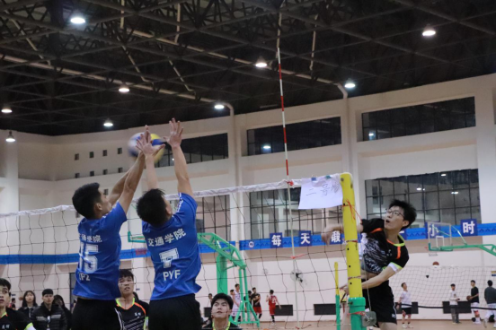 一声哨响之后,展开了精彩的比拼。学生们各施绝技,发球、起跳、拦网、扣球,每一次精彩的传球与得分都引来欢呼阵阵,“加油、加油”的助威声铿锵有力,此起彼伏,队员们充分发挥出自己精湛的个人技术和熟练的战术配合。比赛场上,队员们个个精神抖数,配合默契,气氛文明热烈,迎得了场边围观学生的阵阵喝彩。经过三天的激烈角逐,12月20日晚上,比赛圆满落幕。