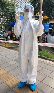 “疫情一场没有硝烟的战争,关系到每个人的生命健康,在这场战争中,没有人是一座孤岛,我们需要的是团结和行动。我作为当代大学生也应该义不容辞。”凌晨的疫情告急足以让一个城市的人诚惶诚恐,而2021级工商管理2班的黄绍精同学和医护人员此时已穿戴好防护服准备进行核酸排查。医护人员的短缺使得他们每天工作时间超负荷,裹着防护服顶着大太阳,这次的疫情防控工作也让他更加真实的感受到了疫情的残酷,他说:“我们尽的力仅仅只是冰山一角。最让我感触的一件事情,一位医护人员在我的面前倒下了,她让我过去协助的时候,毫无征兆地倒下,但她手里还紧紧攥着棉签。无论是哪一年的天灾人祸,我们都坚强挺过,这一次,全国人民众志成城最终会让疫情落荒而逃。”