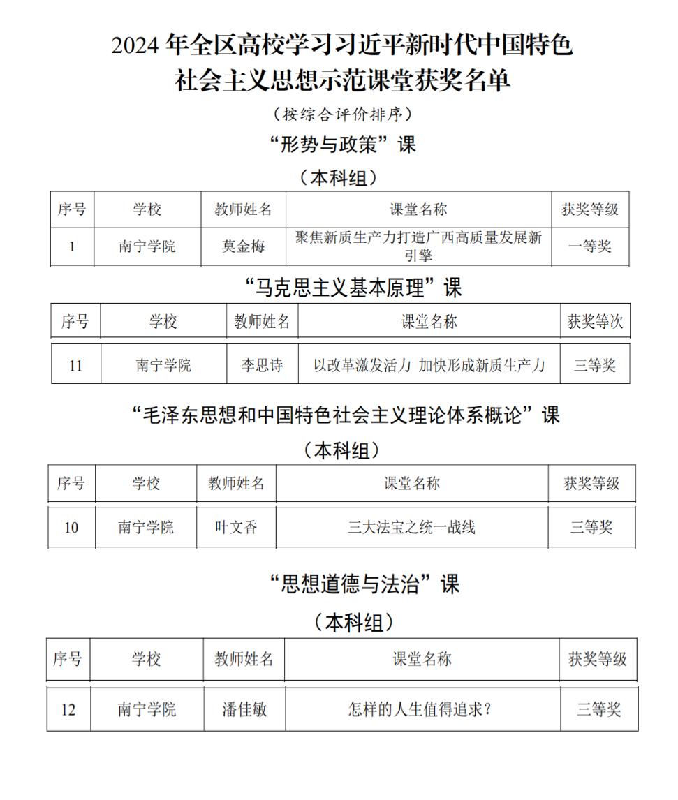 【喜讯】我校思政课教师在2024年全区高校学习习近平新时代中国特色社会主义思想示范课堂遴选活动中喜获佳绩