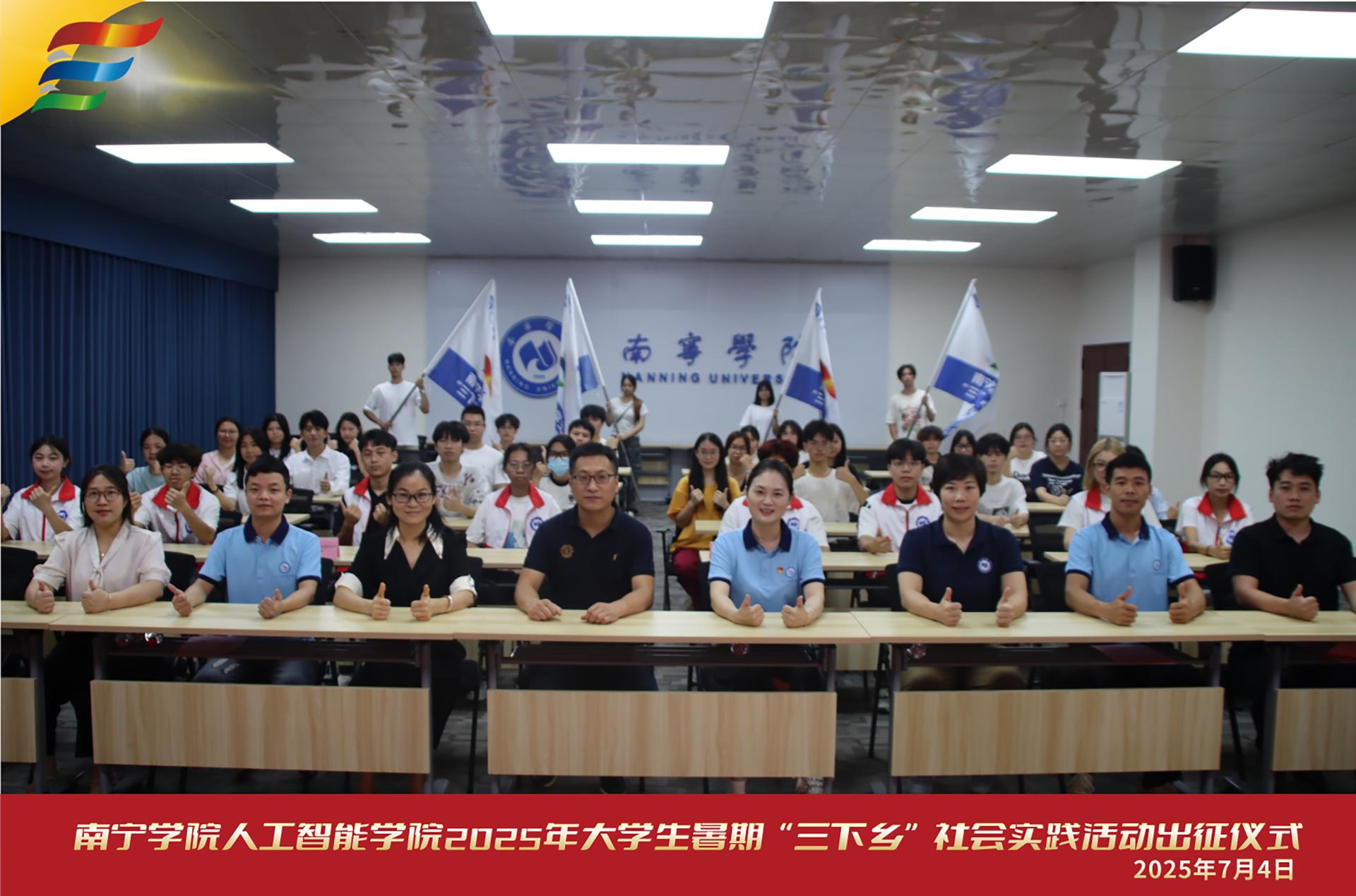 为深入学习贯彻党的二十大精神,积极引导青年学子在社会课堂中“受教育、长才干、作贡献”,人工智能学院组织开展了暑期“三下乡”社会实践活动。7月4日,实践团出征仪式在活动中心202顺利举行,标志着2025年暑假“三下乡”社会实践活动正式拉开帷幕。