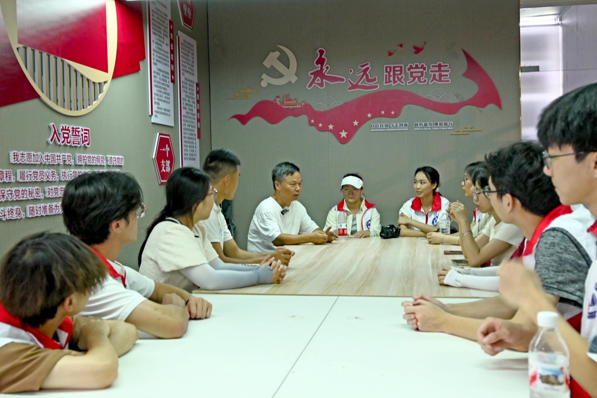 随后,实践团一行来到“传艺”贝雕家居文化馆,与北海市非物质文化遗产保护协会秘书长何明军共话非遗传承创新。交流中,何明军秘书长深入解读工作室牌坊上“传艺”二字的内涵。他指出,“传艺”承载着文化使命,核心是期望年轻一代接力传承贝雕技艺,以“朝花夕拾”作喻,强调当代人应传承前辈培育的艺术之花,让非遗在新时代绽放。