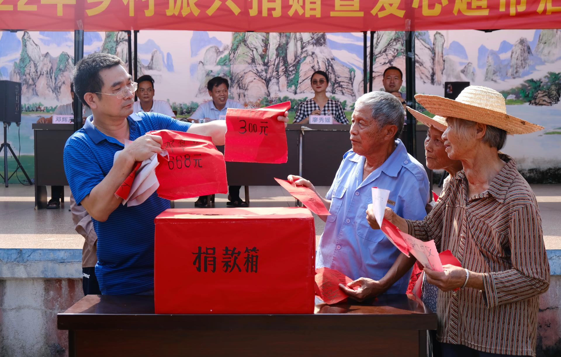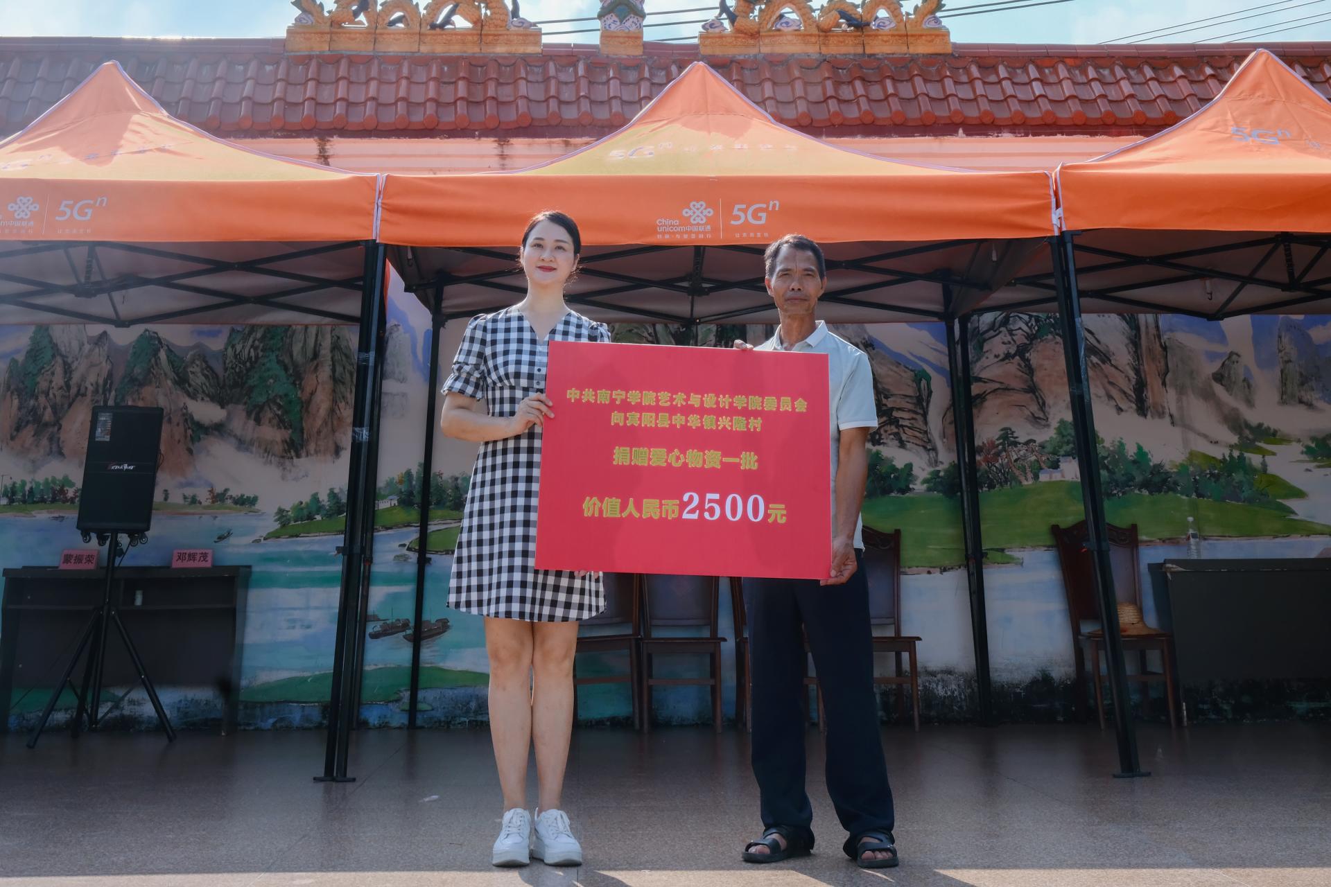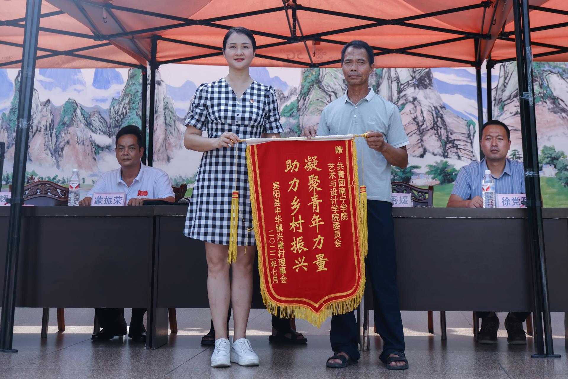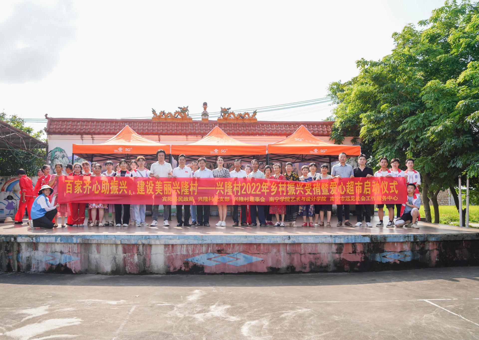 下午15时,村委在公共服务中心广场举行“百家齐心助振兴,建设美丽兴隆村”兴隆村2022年乡村振兴捐赠暨爱心积分超市启动仪式。中华镇党委副书记张世斌,育才村委党支部书记蒙振荣,南宁学院艺术与设计学院党委副书记廖秀媛、副院长徐党卿,兴隆村村长邓辉茂等领导出席仪式。仪式上,实践团成员为兴隆村爱心超市捐赠爱心物资一批,助力爱心积分超市项目的启动。随后,兴隆村村长为实践团赠送“凝聚青年力量,助力乡村振兴”锦旗,对实践团为兴隆村乡村振兴做出的贡献表示感谢。同时,兴隆村的村民也对兴隆村进行爱心捐赠。