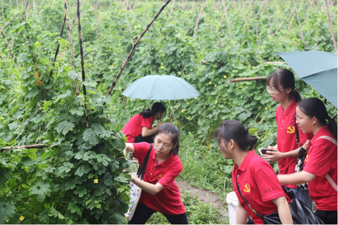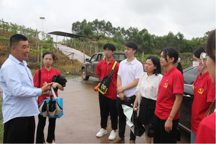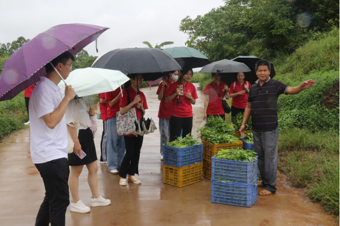 凝聚青春力量,助力乡村振兴。7月7日上午,南宁学院食品与质量工程学院“乡村振兴青年行”考察团(以下简称三下乡团队)由学生科科长徐鸿宇带队,辅导员陈园园、刘春梅以及学院党支部同学一行15人赴广西荣业蔬菜种植基地、广西田野创新农业科技有限公司进行参观学习。