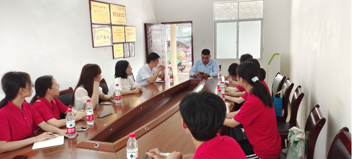 在参观完基地后转战到产业基地会议室参加交流会。会上,姚经理在聆听同学们提出的有关产业基地如何带动乡村振兴的发言后,他指出,要坚定不移地夯实农业基础,把产业基地建设成种植有技术、产品产量高、品质好的重点龙头生产企业;推进质量兴农,通过为村民提供优质的种植技术带动农民一起种植热带水果,在统一进行收购帮助村民销售产品,以实现产业帮扶;抓好产业融合,积极与各大院校和农科院进行合作生产,将更好的技术应用到种植当中,为农民提供更优质更轻松便捷的种植方式。