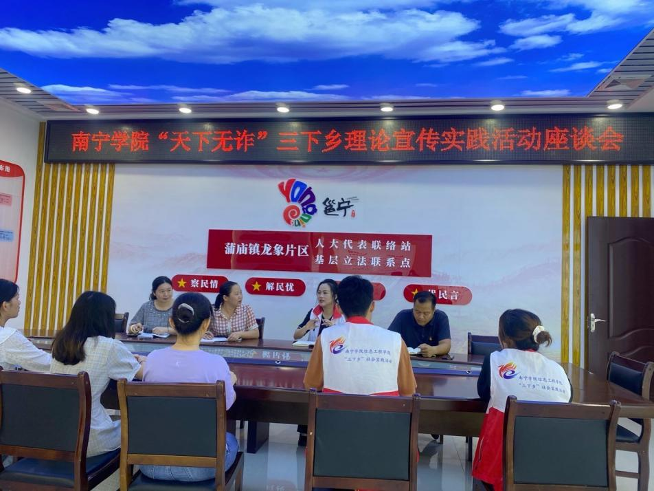 反诈宣传进行时(三)——南宁学院“天下无诈”三下乡 理论宣传实践团赴龙象社区党群服务中心开展工作交流会