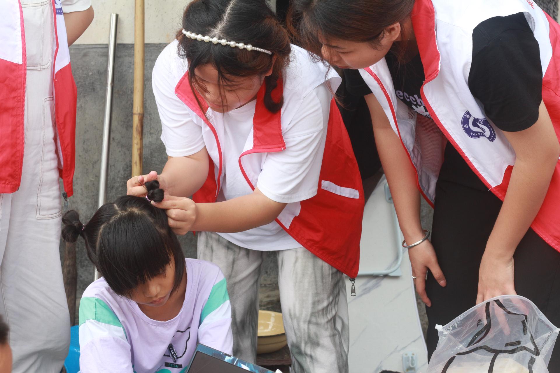 7月11日,实践团还在流山镇开展留守儿童关爱活动,成员们与留守儿童们进行了编辫子、折纸、互动走秀、安全教育等一系列丰富有趣的互动活动,为他们留下美好的暑期记忆!