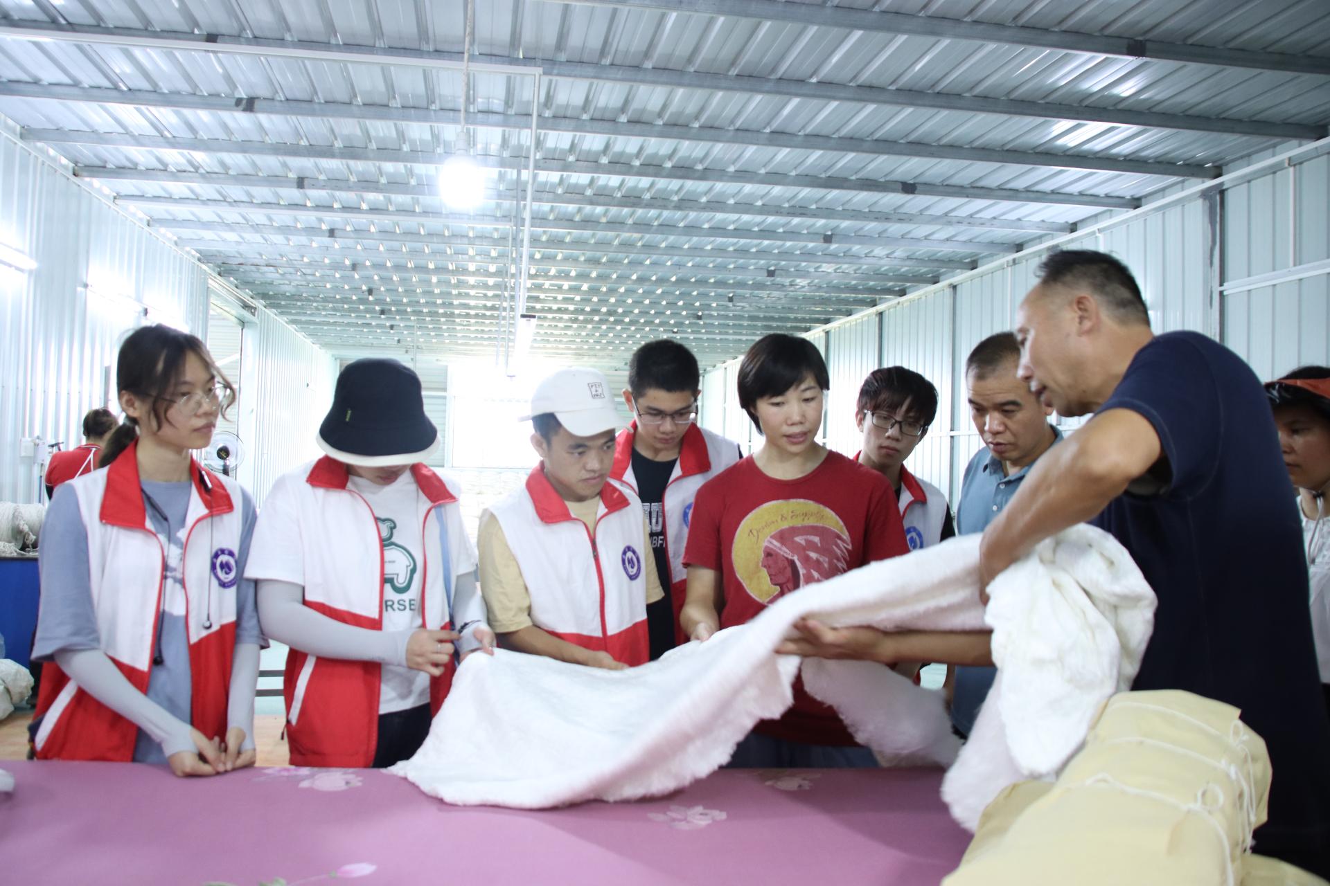 负责人讲解蚕丝被制作方法