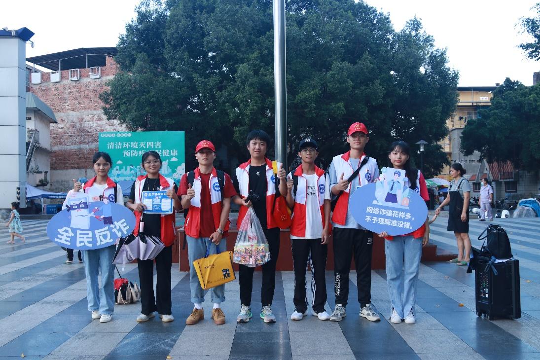 活动现场,反诈实践团深入邕宁区新兴社区,通过宣讲真实案例、发放宣传页、现场答疑解惑等方式,用通俗易懂的语言向当地群众耐心、详细地讲解了虚假信息诈骗、网络中奖诈骗、仿冒亲友进行诈骗等一系列网络电信诈骗的类型和特点,进一步推广反诈骗的预防手段,从源头上减少诈骗事件的发生。