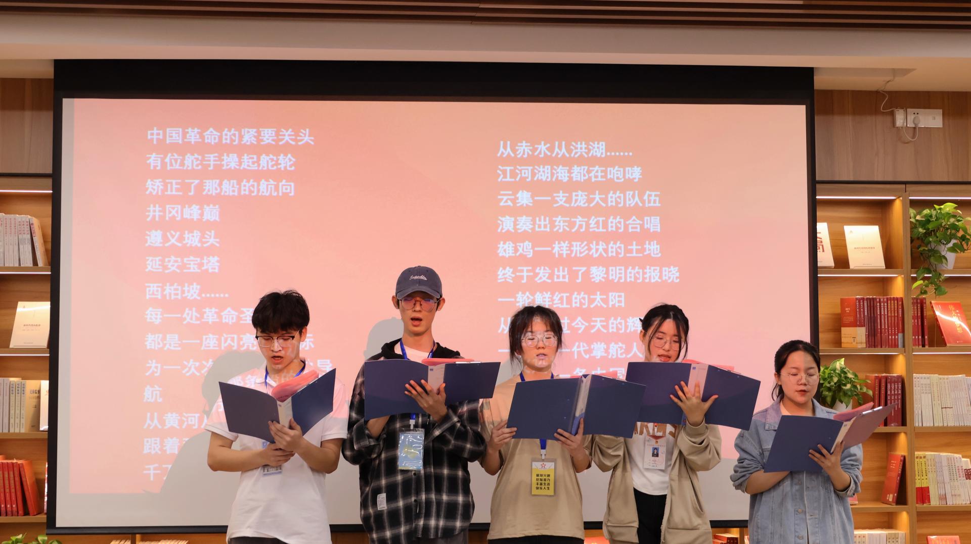 分享会上,5名学生干部代表还进行了诗朗诵《红船,从南湖启航》,在主持人的带领下重温入团誓词,进一步丰富同学们在读书分享会中的收获。通过此次分享会,更强化我校青年学生干部综合素质培养,促进形成良好阅读习惯,形成“好读书、读好书、大读书、读大书”的浓厚氛围。(图/南宁学院青年传媒中心 文/南宁学院青年传媒中心采编部李湘)