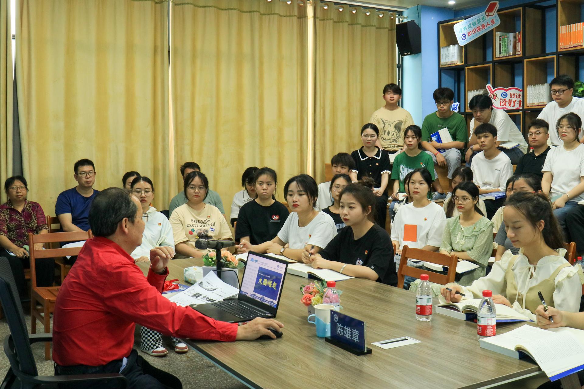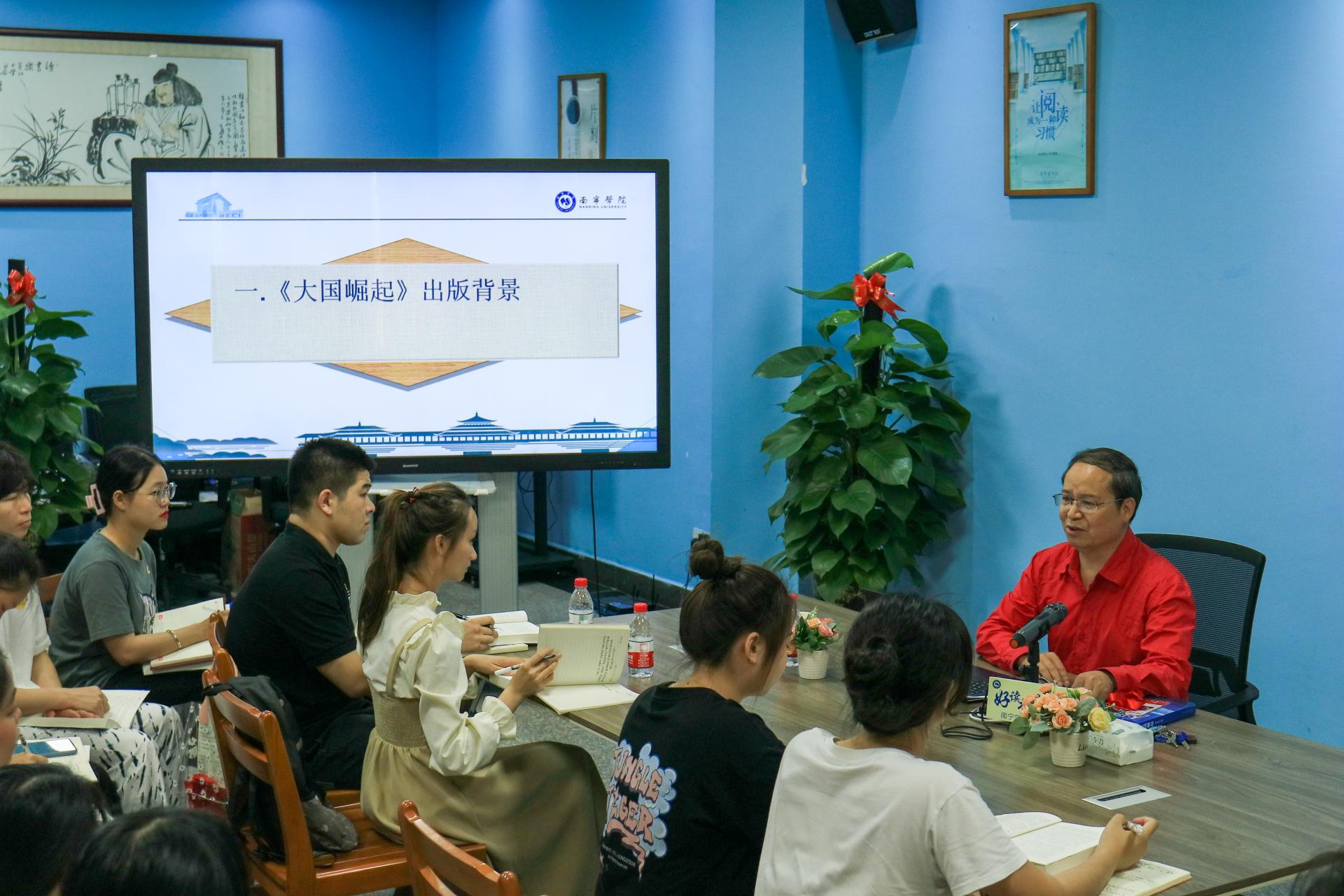 为让师生了解世界性大国崛起的共同特征和领悟中国如何顺应世界发展大势寻求现代化的有效途径,2023年4月4日下午,南宁学院2023年《大国崛起》师生共读沙龙活动在图书馆二楼阅读分享空间成功举办,活动由副校长陈雄章主持,共有50多名师生代表参加。