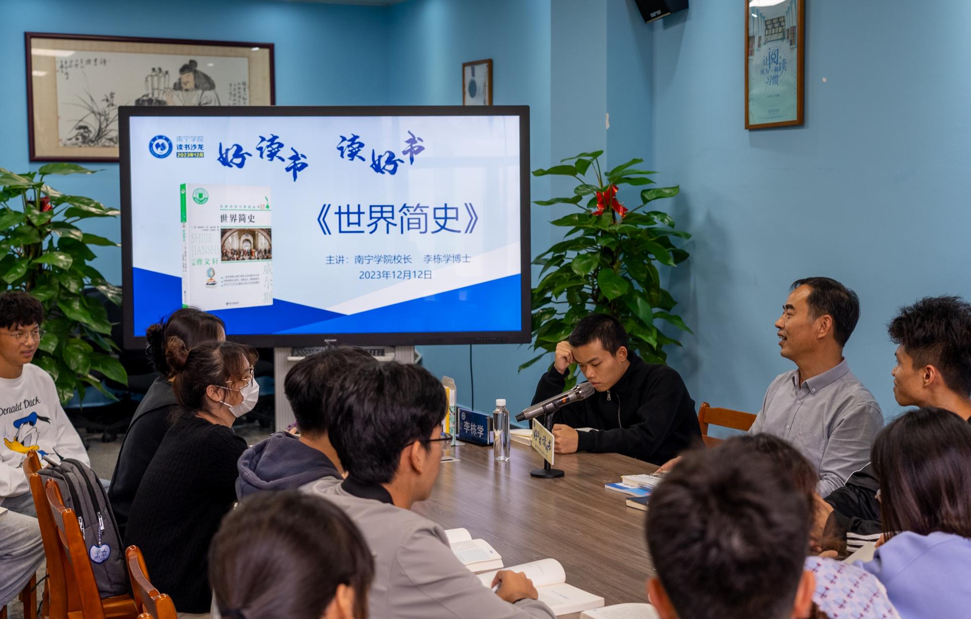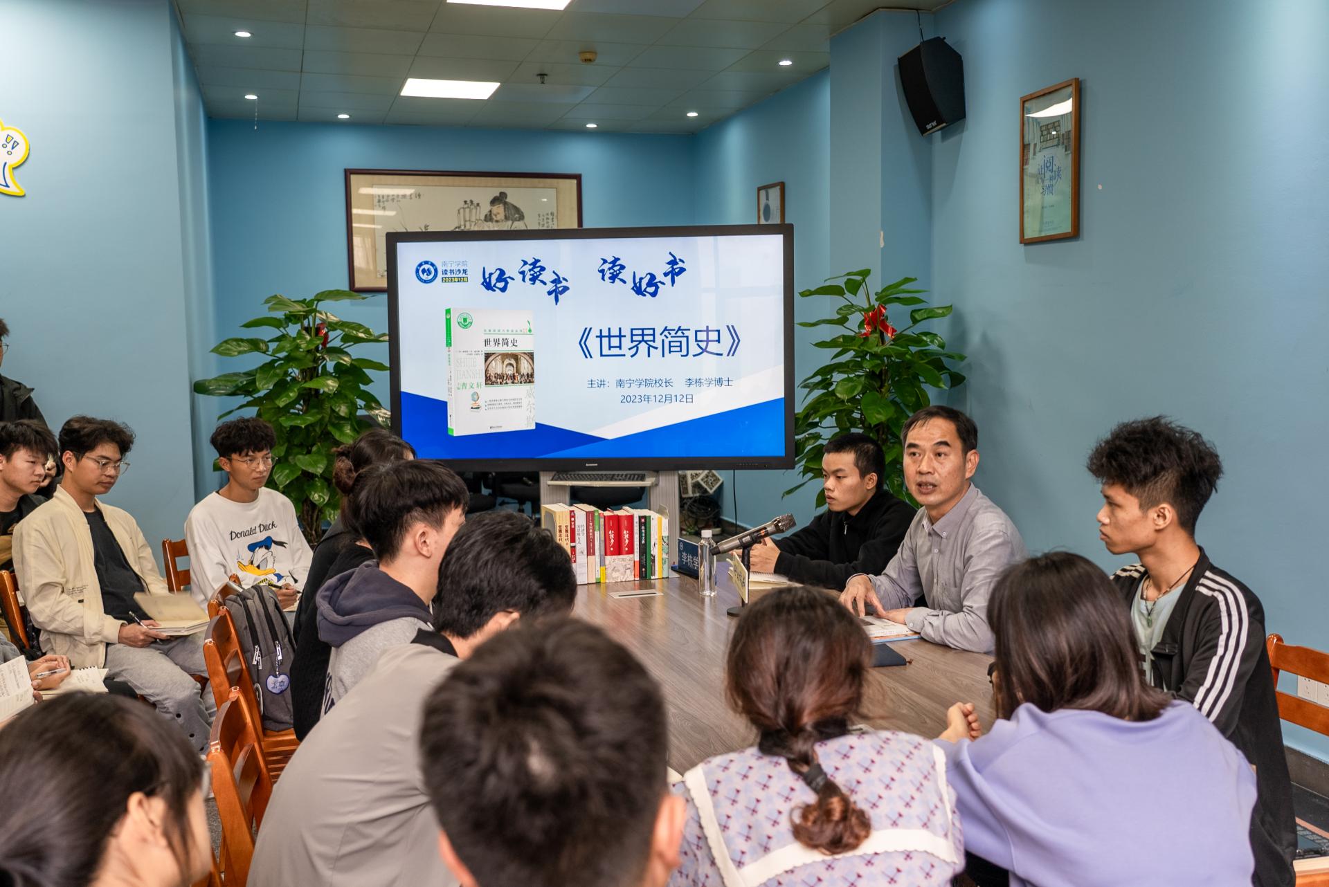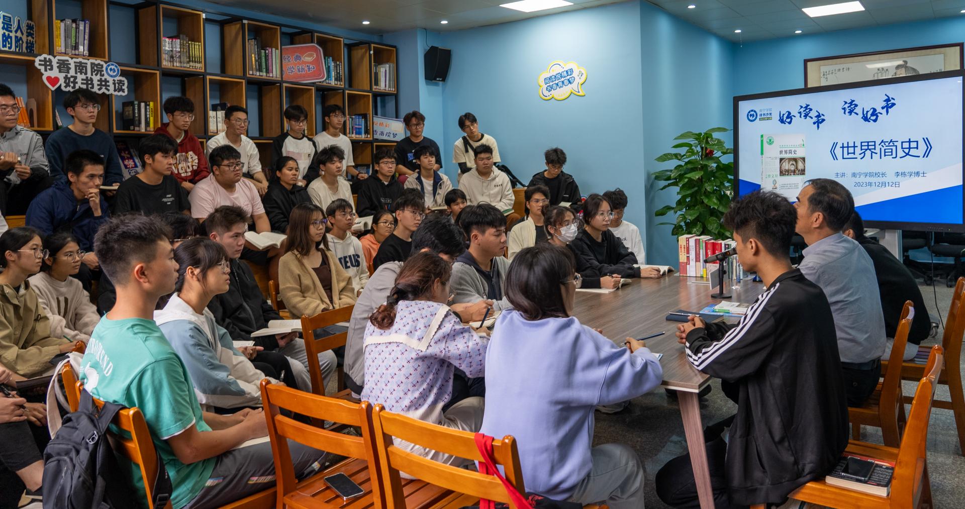 为推动学校阅读文化建设,12月12日下午,南宁学院《世界简史》师生共读沙龙活动在图书馆二楼阅读分享空间成功举办,活动由学校校长李栋学主持,共有来自智能制造学院的50多名师生代表参加。