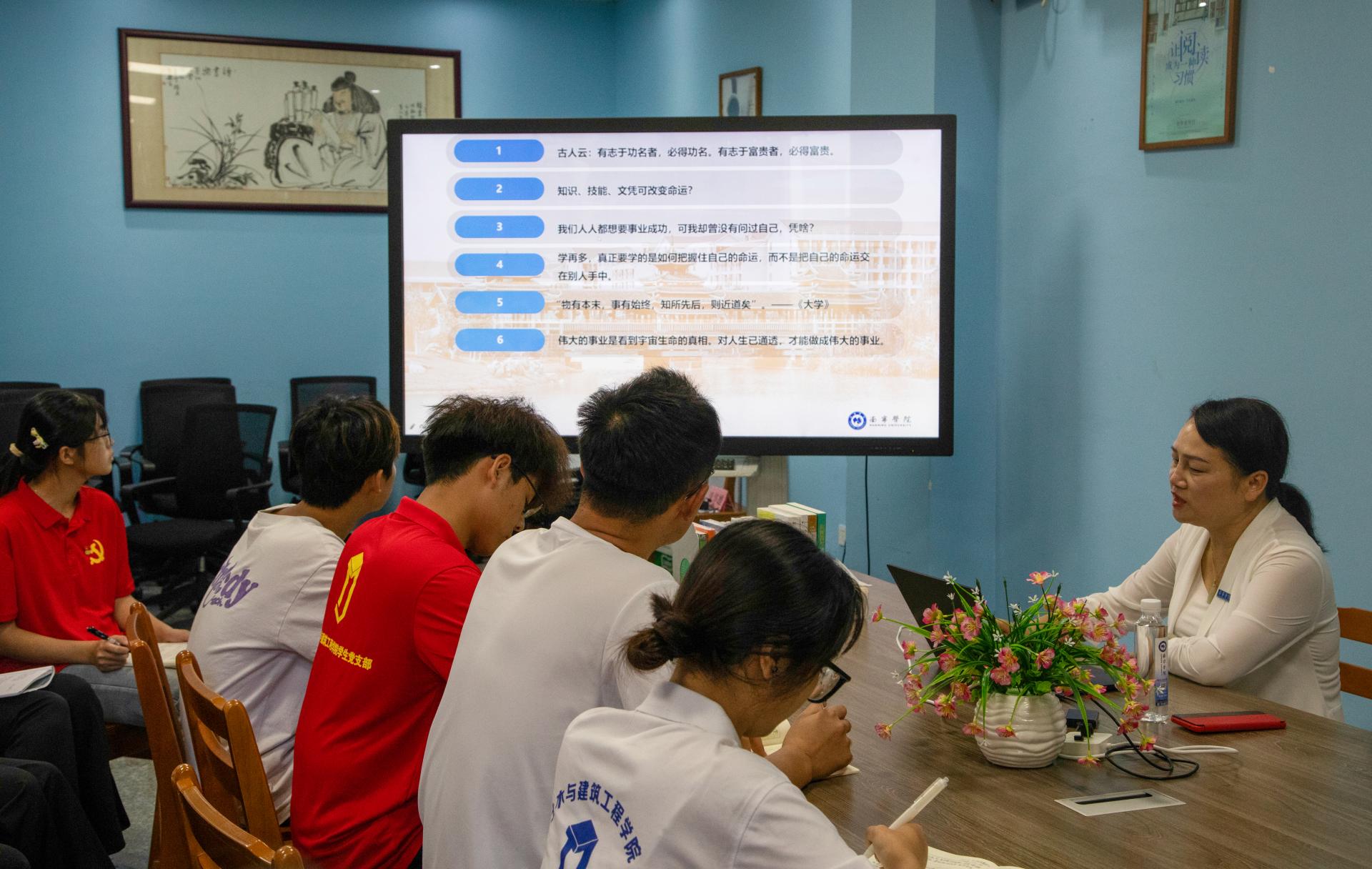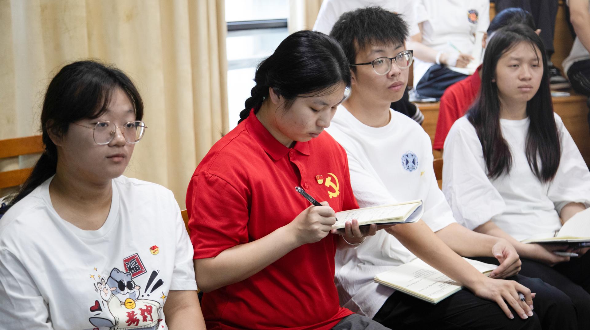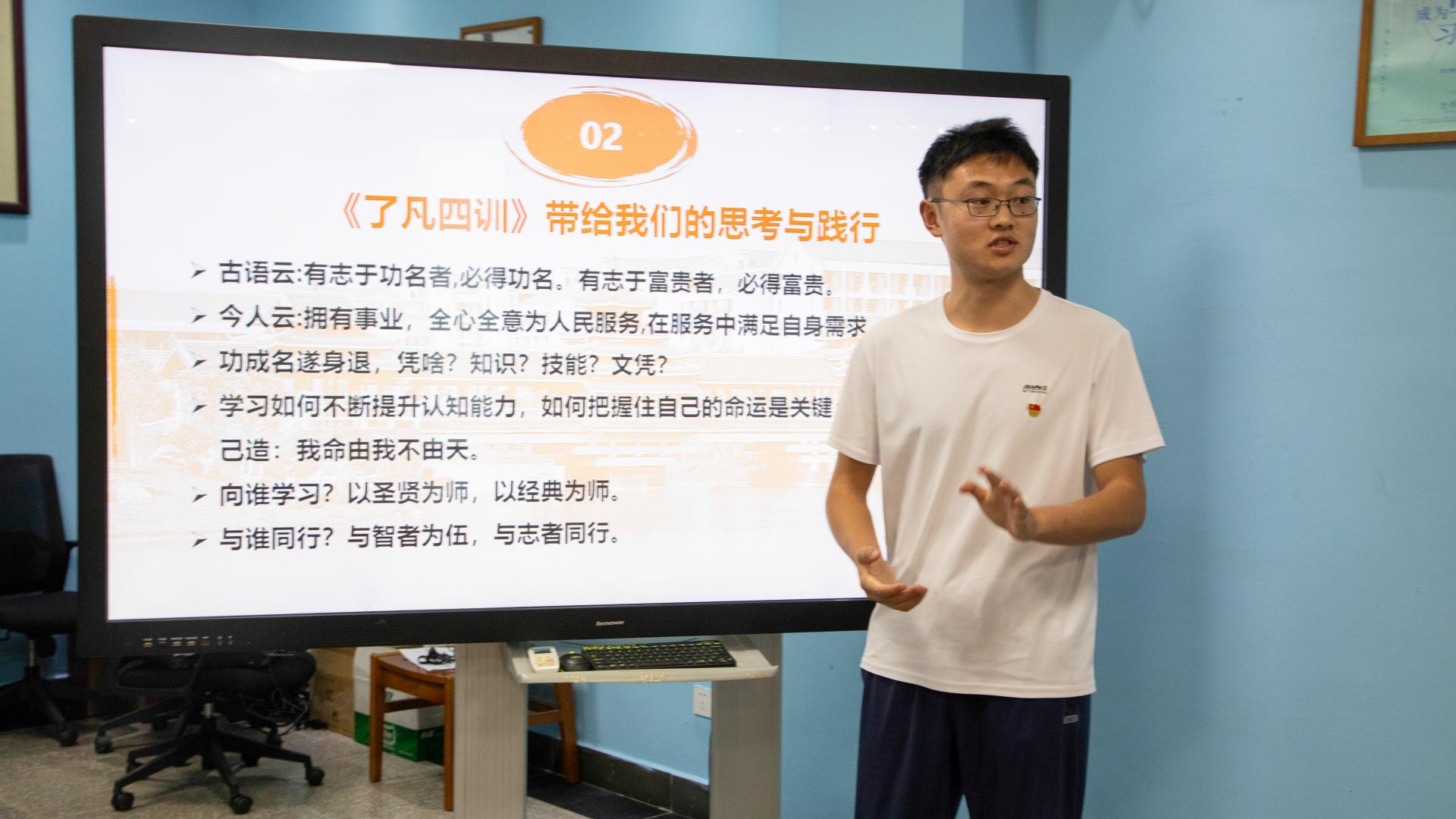 随后,韦粤桂副书记详细解读了《了凡四训》的四大篇章:立命之学、改过之法、积德之方和谦德之效。该书通过讲述袁了凡在遇到孔先生算命后的命运轨迹,以及他如何通过行善积德改变自己的命运,让同学们深刻理解了书中的智慧。
