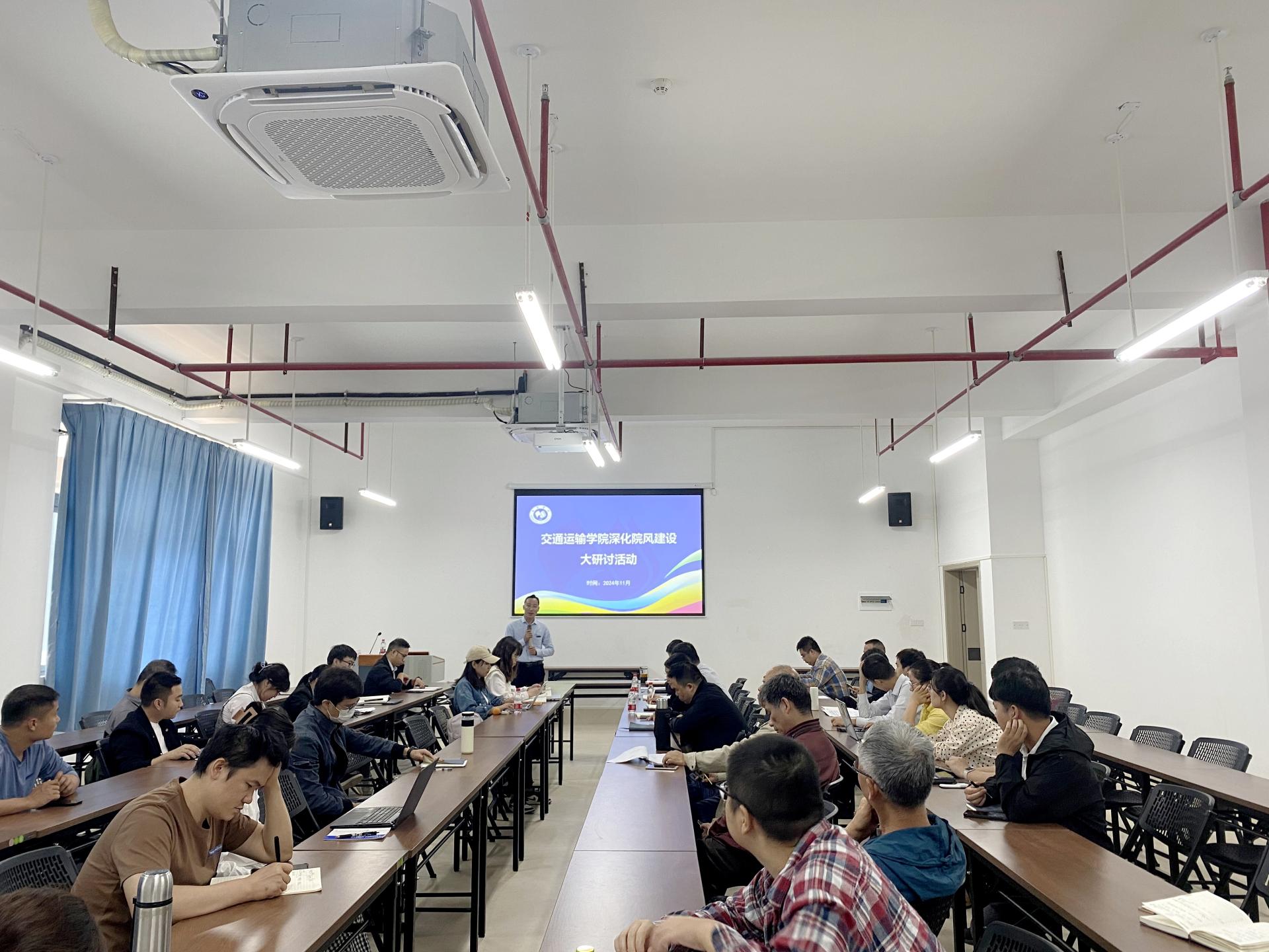为深化院风建设,促进学院内涵式高质量发展,根据学校的部署,交通运输学院于2024年10月30日全面启动了全院师生共同参与的校风建设大研讨大学习活动。此次活动的核心目标是统一思想、凝聚共识、查找问题、提出举措,提升院风建设,为塑造优良的校风打下坚实的基础。