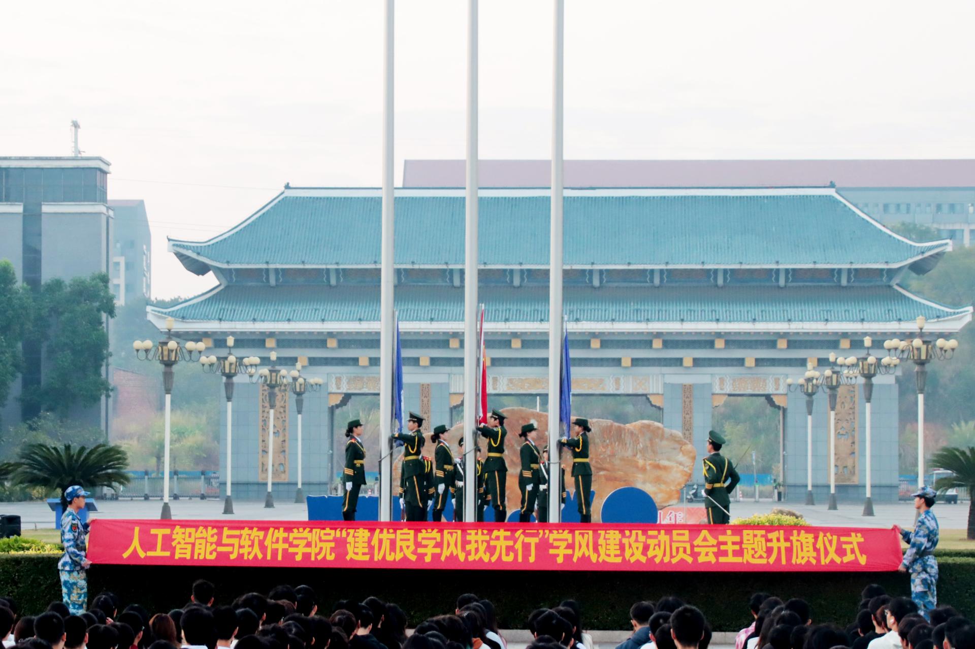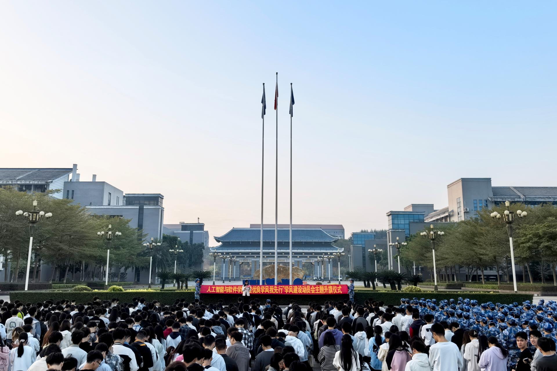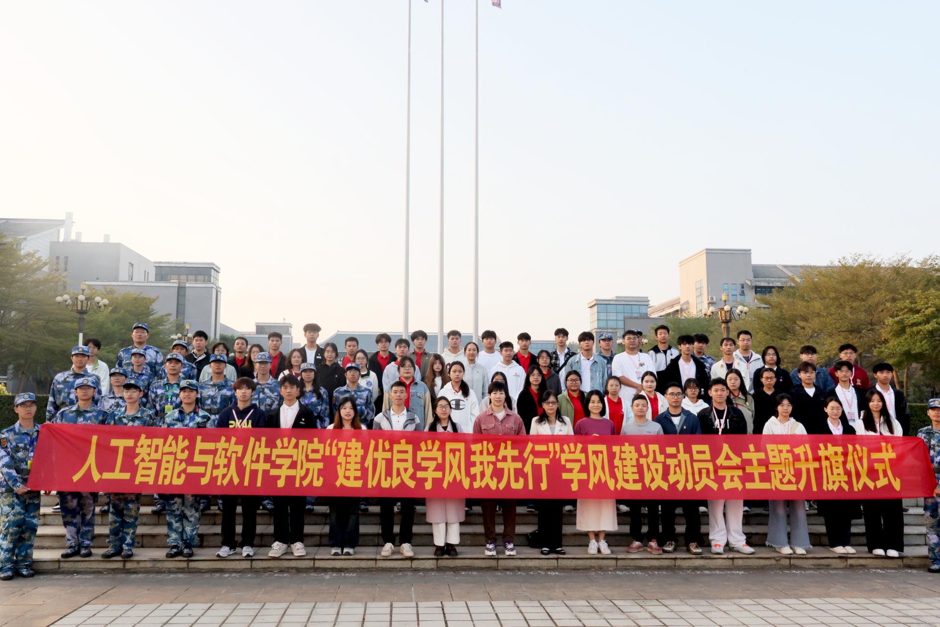 11月25日上午,人工智能与软件学院在南门升旗台举行“建优良学风我先行”学风建设动员会主题升旗仪式。学院党委书记陆海兰、专兼职辅导员出席升旗仪式,校团委学生代表、学院全体在校学生党员、各学生组织干部、2022 级全体班干、2023级和 2024 级全体学生参加升旗仪式。升旗仪式由学生科科长梁信舅主持。