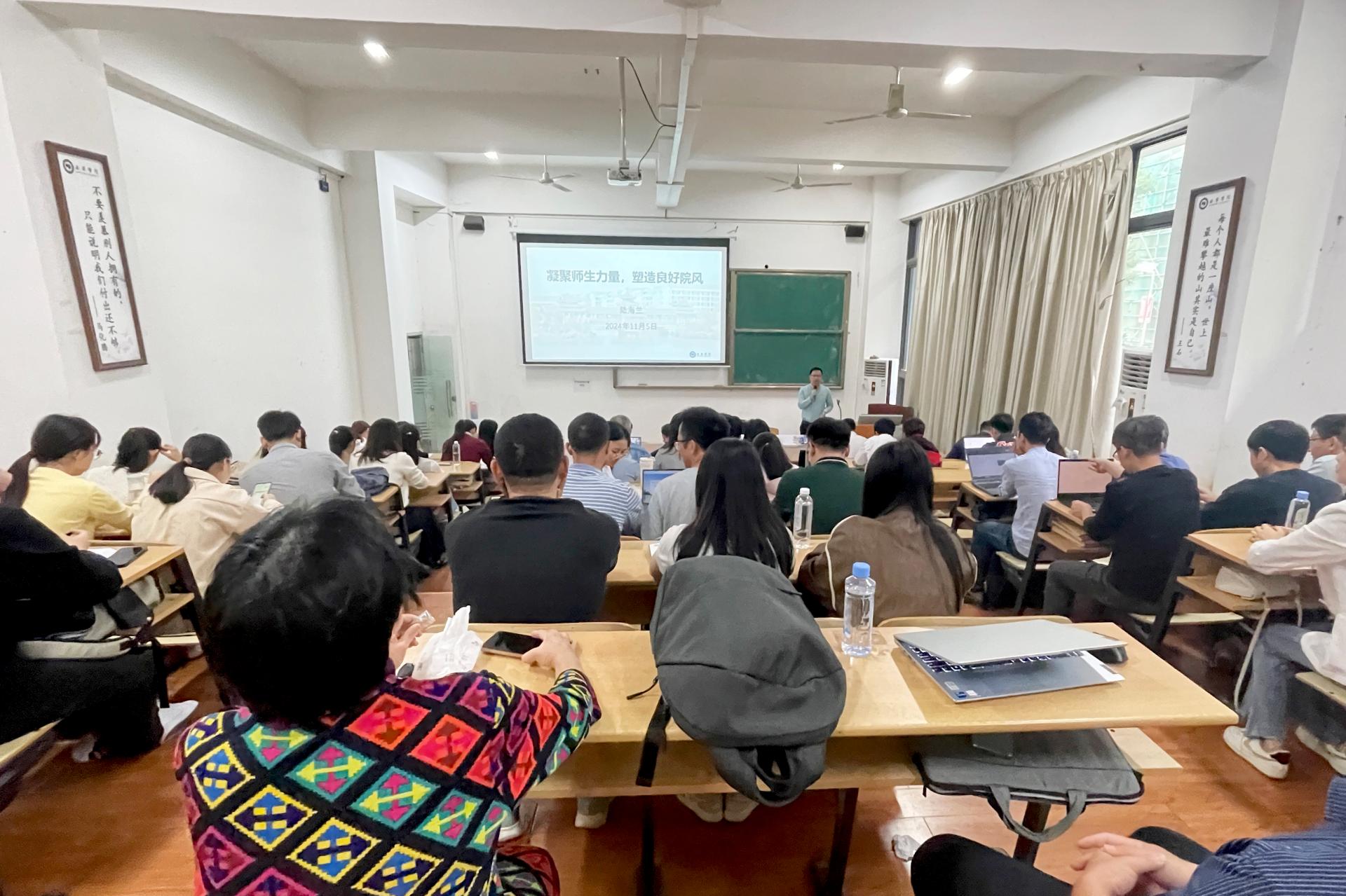 为贯彻落实学校关于校风建设指示精神,提升学院教师工作作风、教师教风和学生学风,落实立德树人根本任务,11月5日下午,人工智能与软件学院在智能楼102召开院风建设动员部署会。学院领导及全体教师参加会议,会议由学院党委书记陆海兰主持。