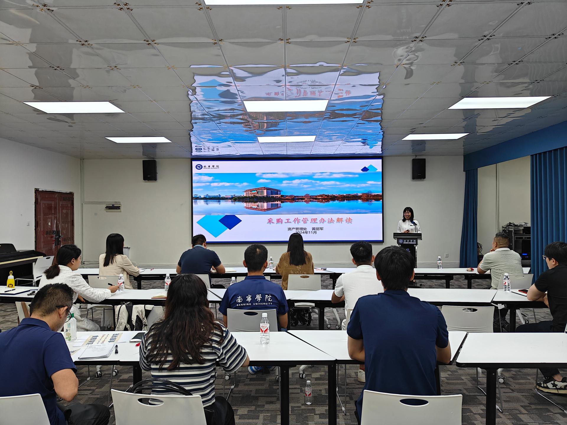 研讨学习活动分为两个阶段。第一阶段由资产处处长黄丽军带领全体成员进行采购工作管理办法的解读及学习。黄丽军处长围绕《南宁学院采购工作管理暂行办法》(南院后勤〔2024〕2号)文件重点讲解,让成员们更加明确在采购上的流程、要求,同时黄处长还热情解答了部门成员提出的采购相关问题,进一步提升了部门成员的采购招标工作意识,使部门未来良好工作作风的养成得到有效增强,推动了部门今后参与采购工作更加规范化,为部门工作效率的提升奠定基础。第二阶段由王静静处长带领全体成员深入开展大研讨。王处长在会上首先传达了学校“1+4”文件的指导思想和建设目标,指出了开展大研讨大学习活动的重要意义,让全体成员充分立足部门当前建设思路,着眼未来,围绕学校核心价值的理解与践行,校风和室风存在的问题与建议,室风建设方案进行思考和讨论。会上成员们有针对如何发挥工作中的主观能动性提出建议,有针对当前部门存在的问题进行深入剖析,有针对科室未来创新发展提出建议等,成员们各抒己见,深入开展讨论,最终部门在如何更高效、能动参与到校风建设中形成了统一的思想和认识。