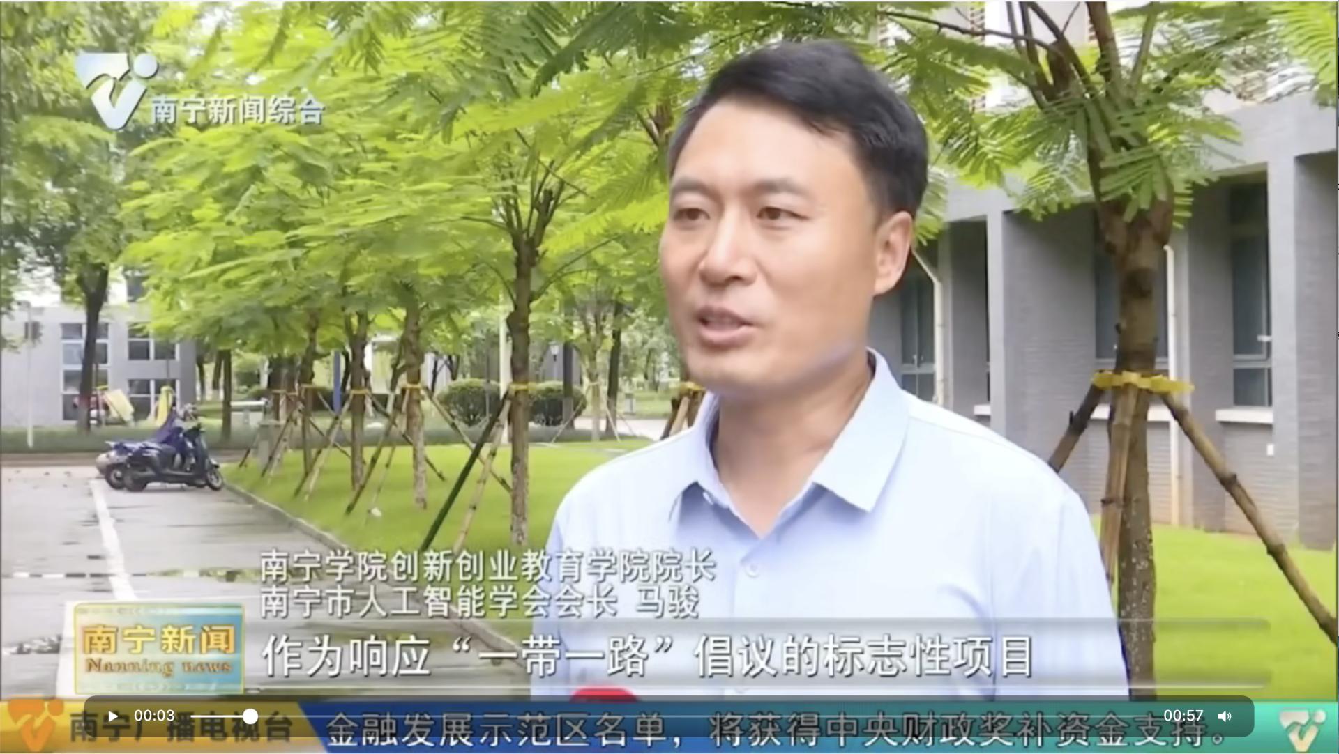 【媒体看南院】新华网、南宁日报、南宁电视台报道南宁学院创新创业教育学院院长、南宁市人工智能学会会长马骏对南A中心建成的看法