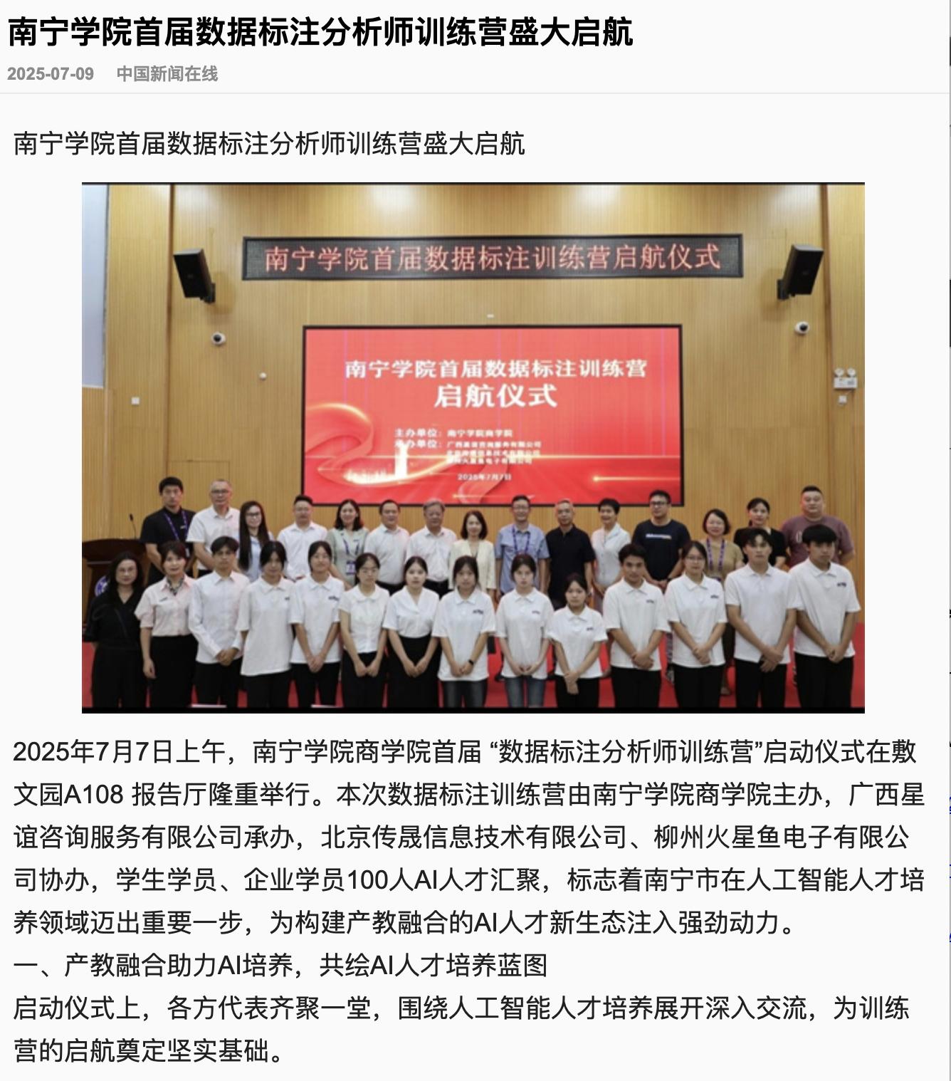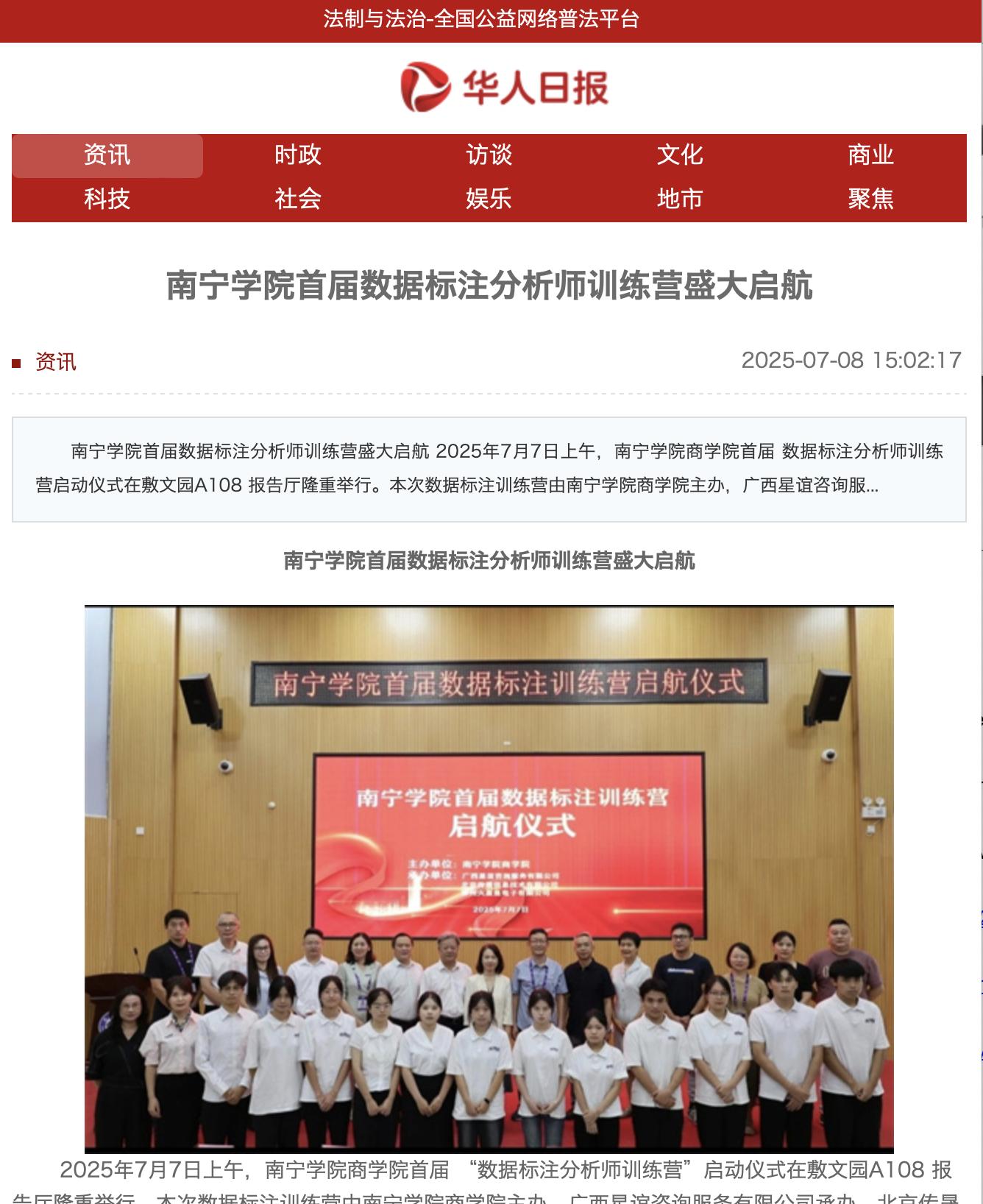 【媒体看南院】中国传播网、华人日报、中国新闻在线等多家媒体报道南宁学院首届数据标注分析师训练营盛大启航