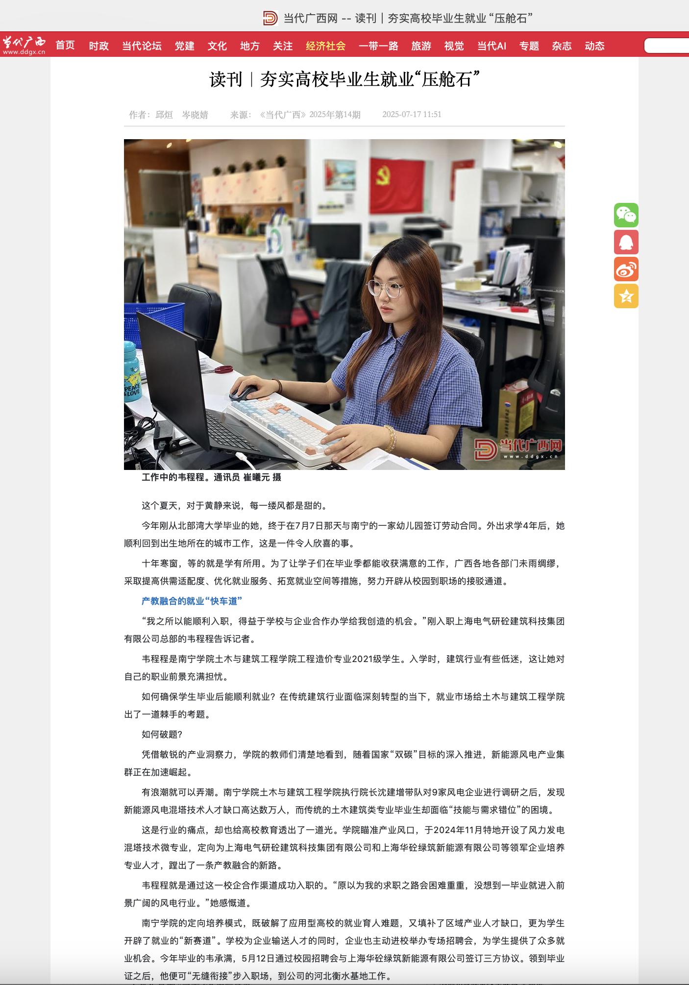 【媒体看南院】《当代广西》杂志报道南宁学院产教融合及毕业生就业工作