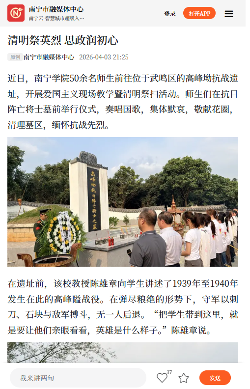 【媒体看南院】《南宁日报》报道南宁学院“清明祭英烈 思政润初心”活动