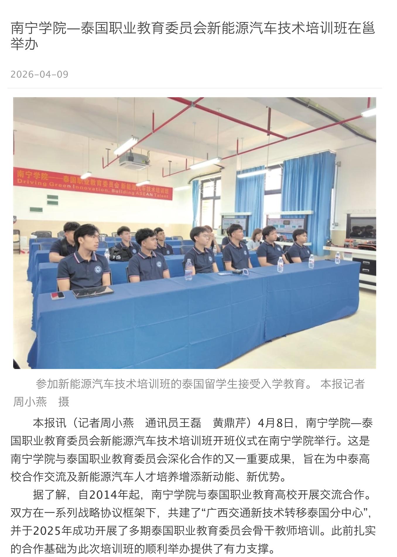 【媒体看南院】广西日报、南宁日报报道泰国职教师生在南宁学院研修新能源汽车技术