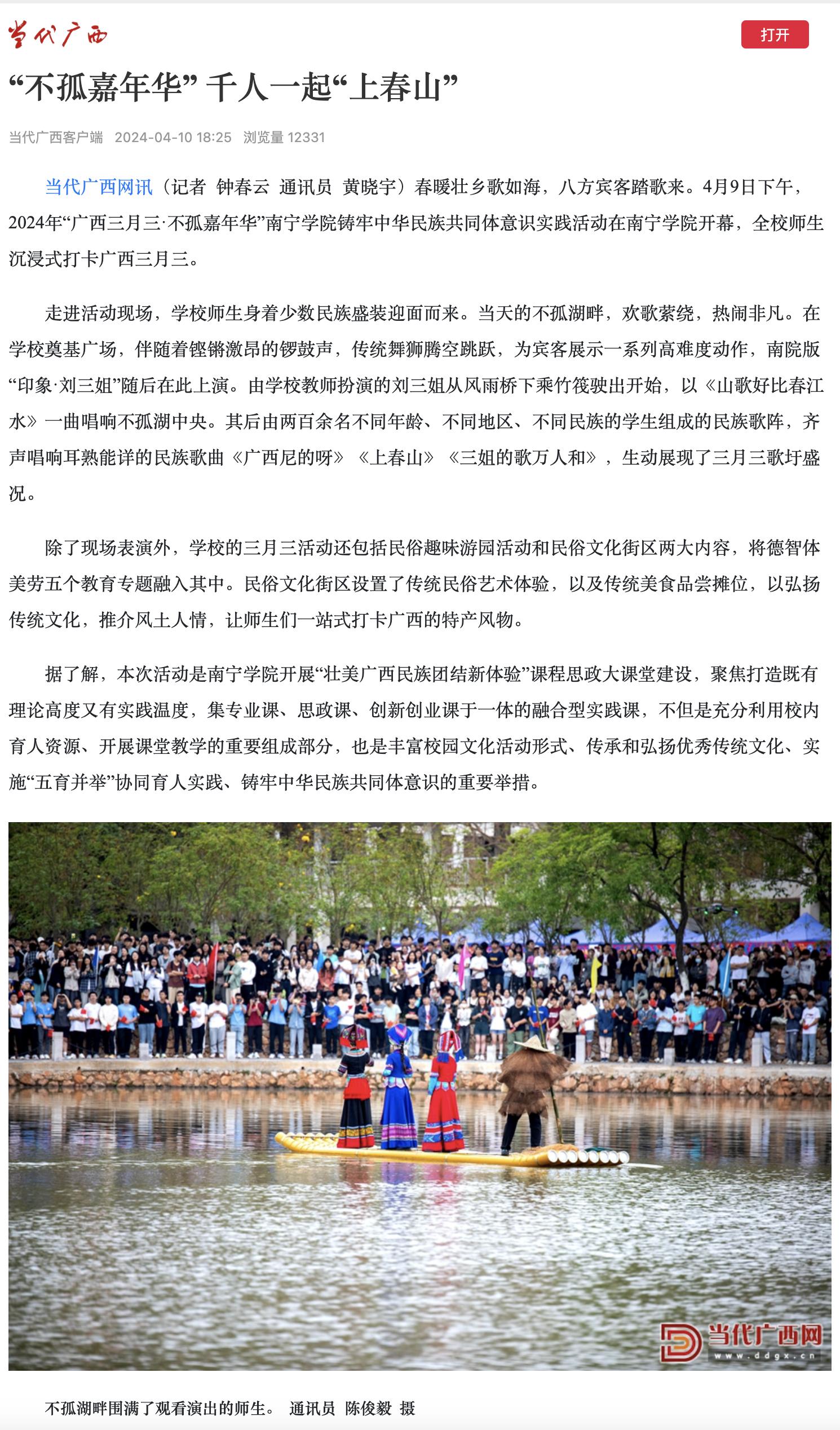【媒体看南院】多家媒体报道我校“广西三月三 不孤嘉年华”铸牢中华民族共同体意识实践大课堂