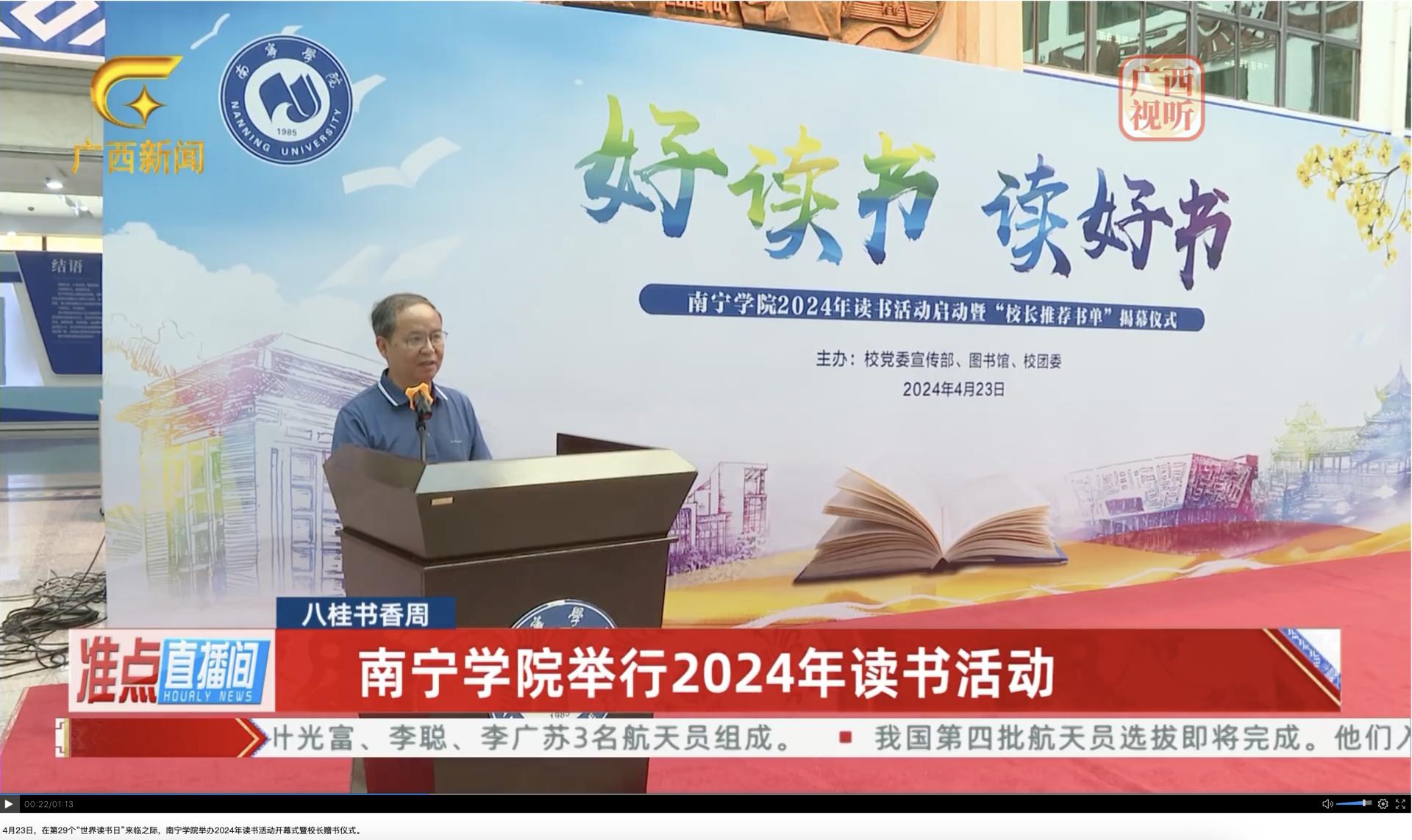 3.南宁电视台:【第29个“世界读书日”】深化全民阅读 让书香沁润邕城 https://nntt.nntv.cn/nntt/app/sharenews.html?id=338896