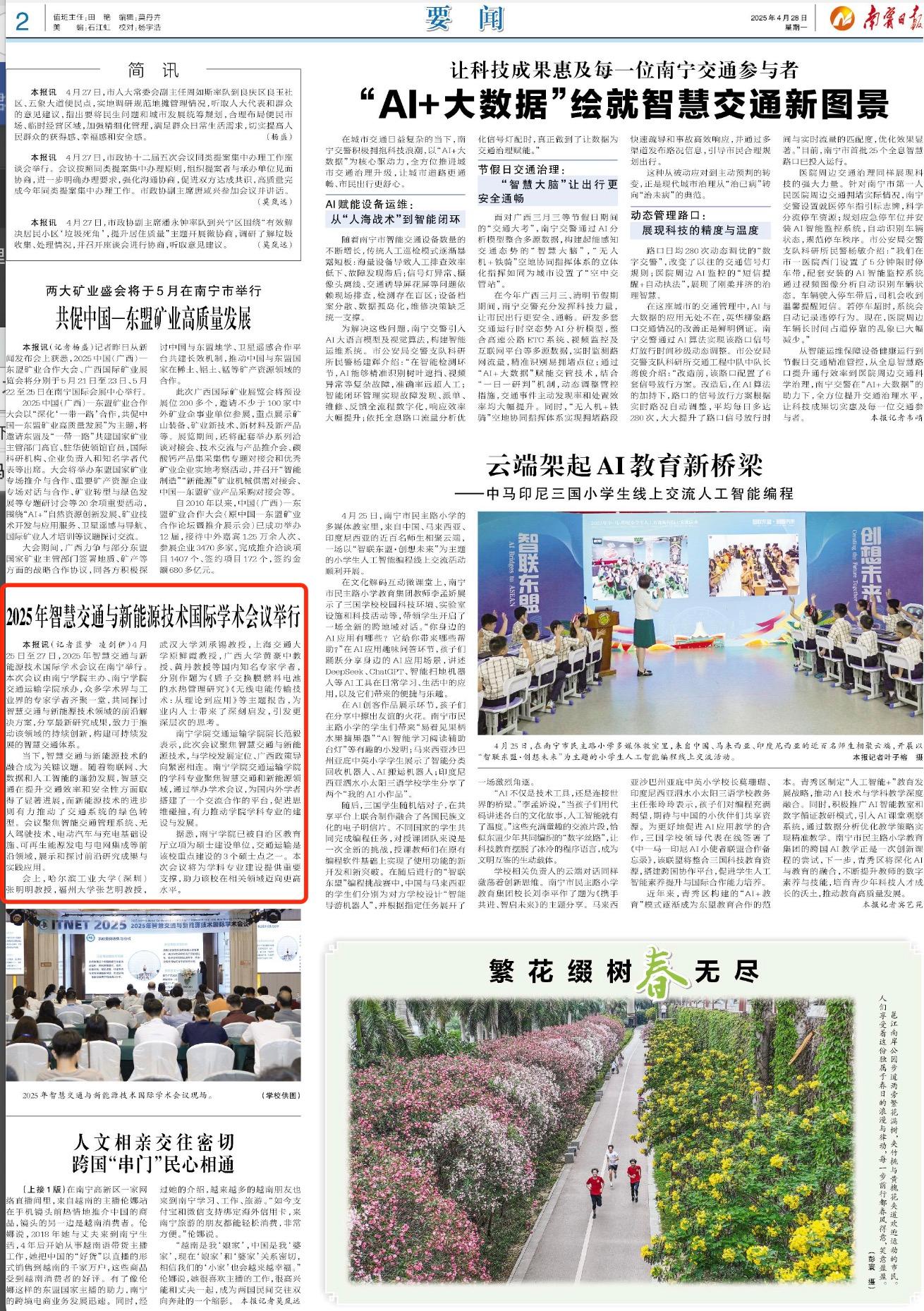 【媒体看南院】南宁日报报道2025年智慧交通与新能源技术国际学术会议在南宁学院举行
