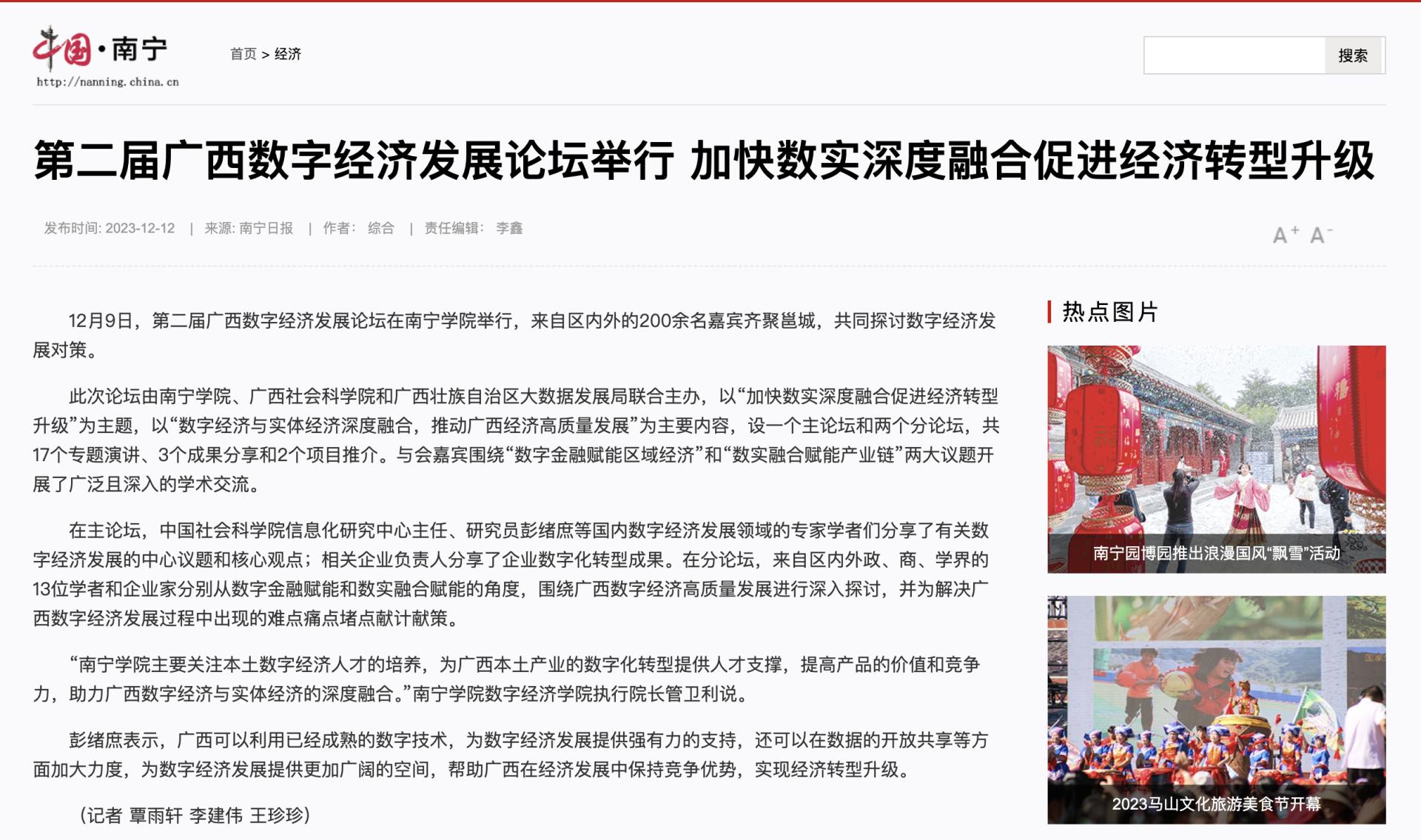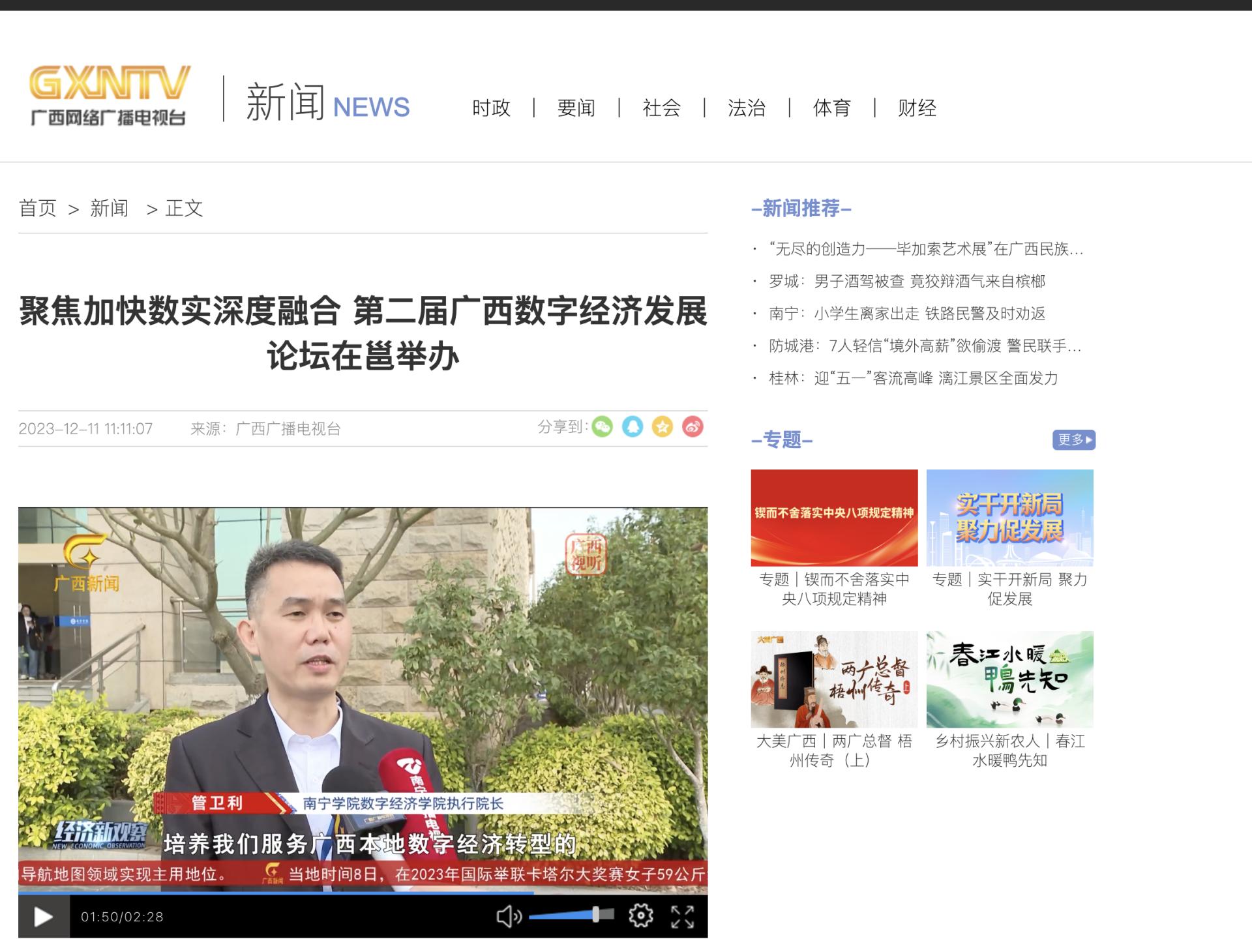 【媒体看南院】中国网、广西电视台、南宁电视台、南宁日报报道加快数实深度融合 促进经济转型升级 第二届广西数宇经济发展论坛在南宁学院举行