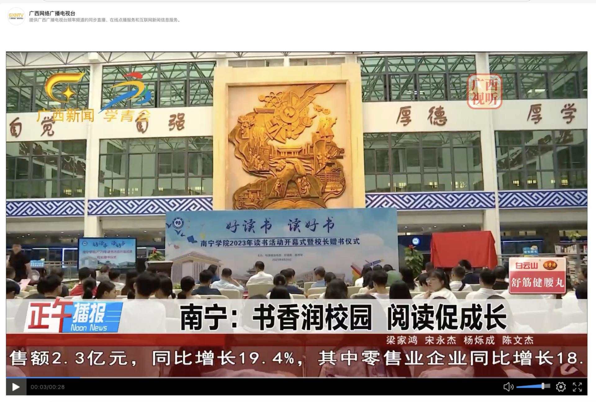 【媒体看南院】广西电视台、南宁日报报道好读书 读好书 南宁学院举行2023年读书活动开幕式暨校长赠书仪式