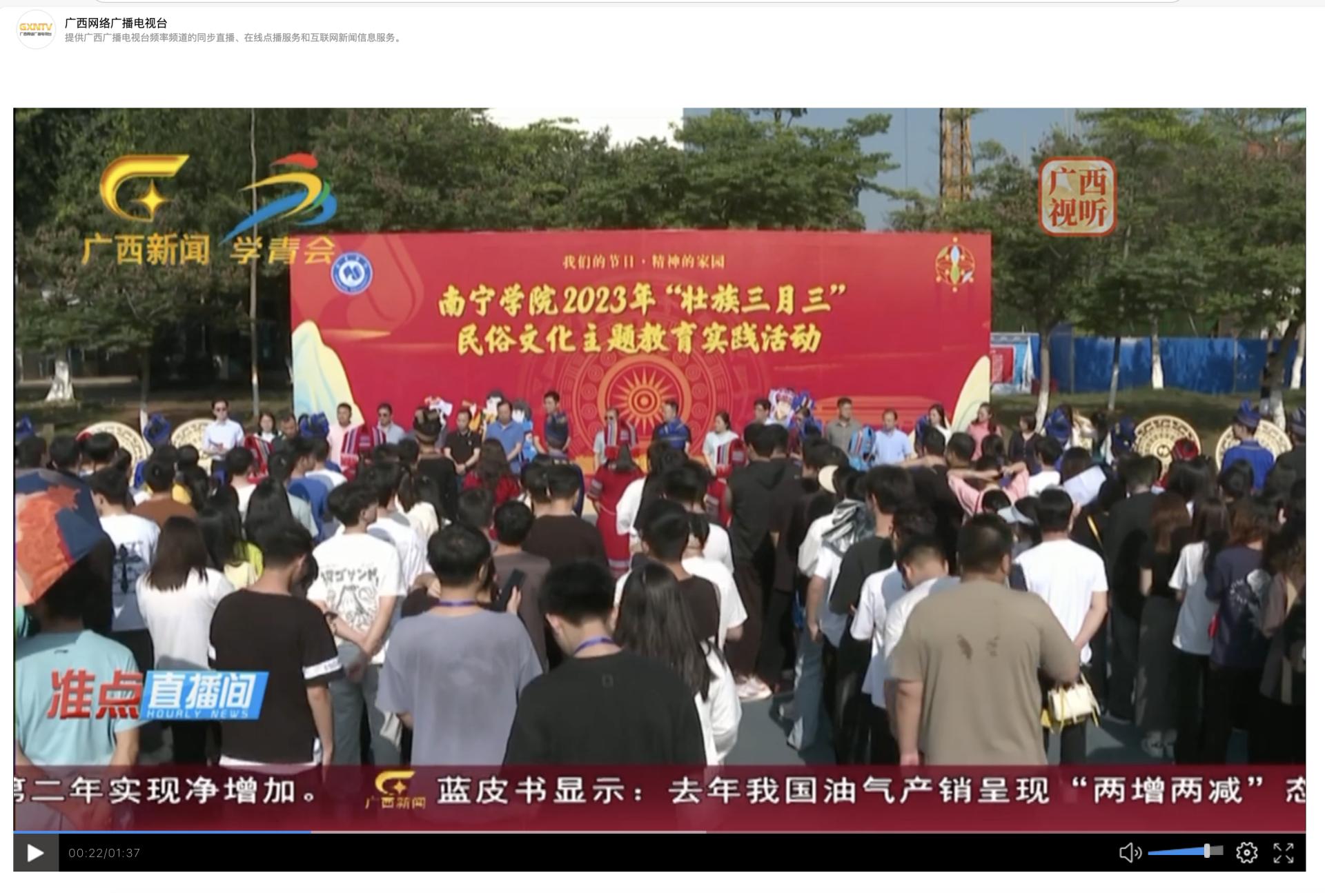 【媒体看南院】广西电视台报道民俗文化主题教育实践活动丰富多彩 南宁学院3000多名师生现场体验“壮族三月三”魅力