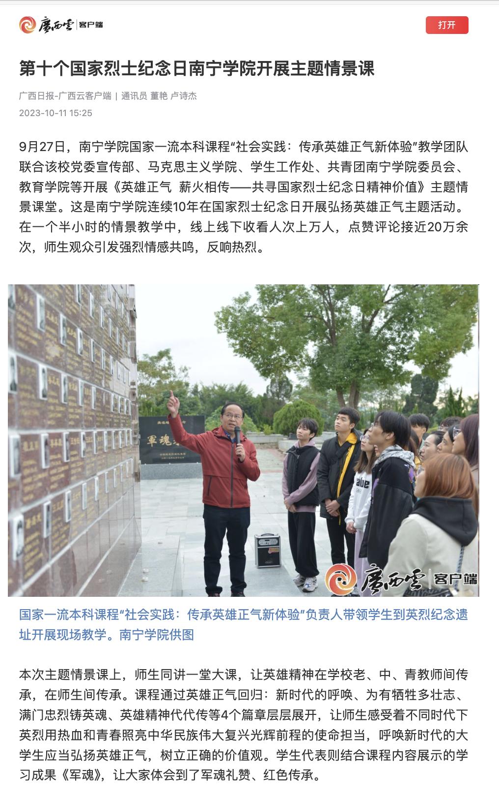 1.广西日报:第十个国家烈士纪念日南宁学院开展主题情景课