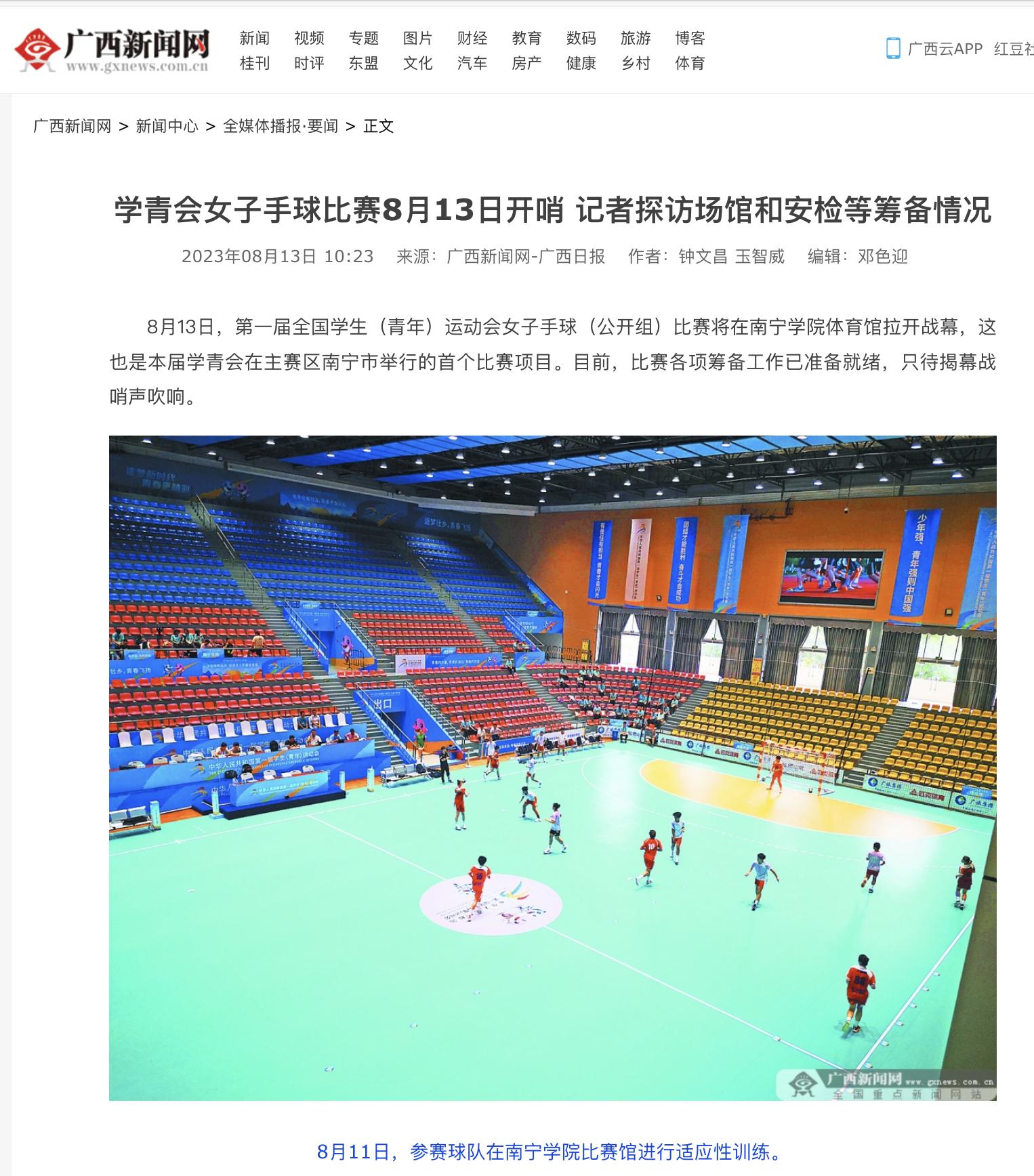 2.南宁晚报:以赛测赛!南宁学院学青会手球场馆准备就绪 https://www.gxnews.com.cn/staticpages/20230803/newgx64cb9bcf-21237421.shtml